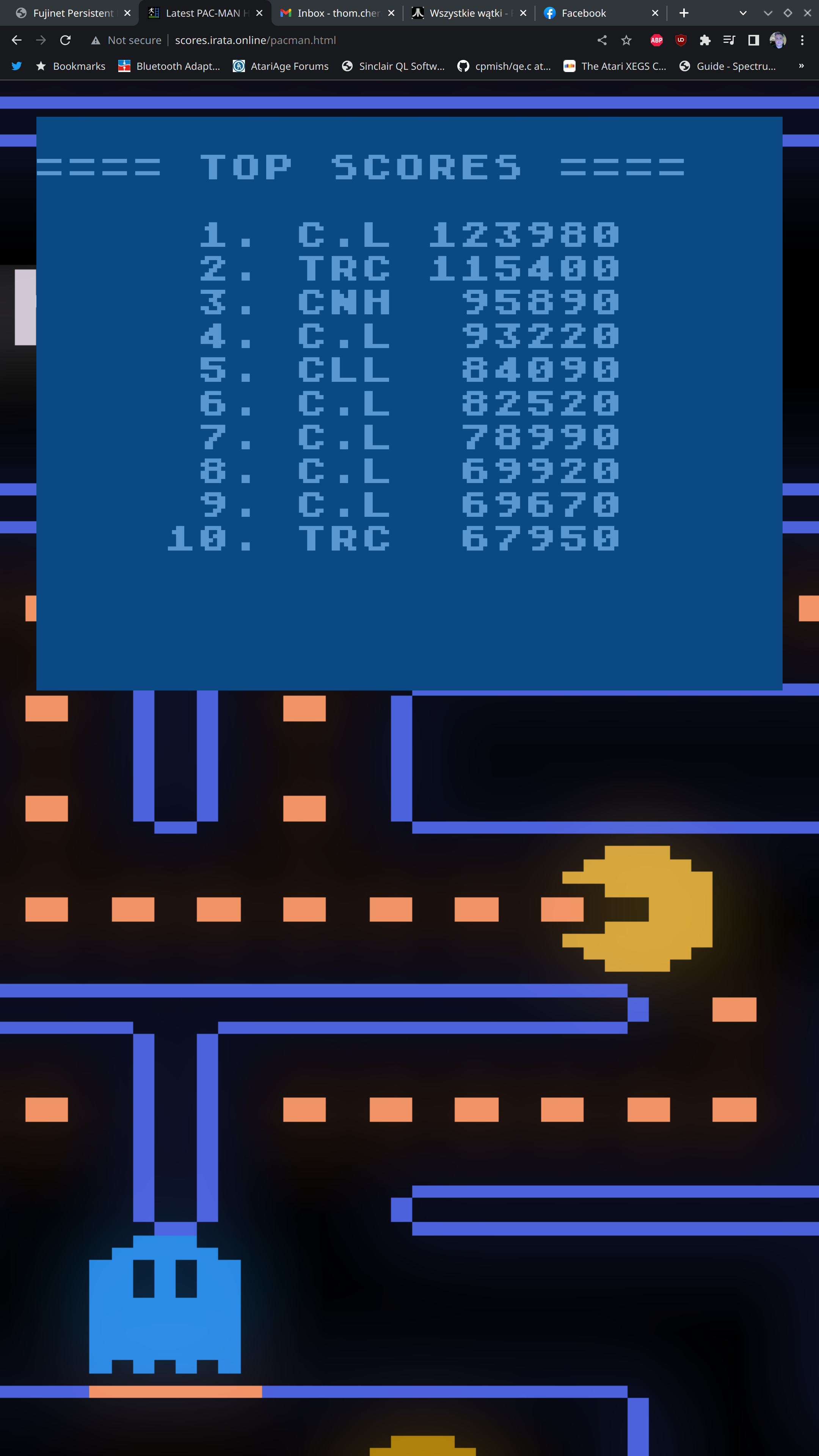 Meine bisher beste Punktzahl bei Pac-Man. Freigegeben mit FujiNet High Score Enabled