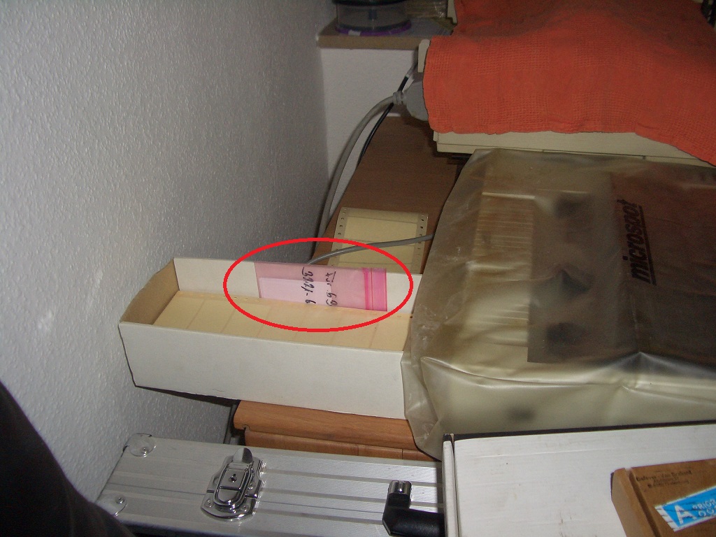 JETZT war es endlich so weit - damit sie nicht verknicken / wegkommen, hatte ich sie seitlich an einen Stapel Adressaufkleber hinter einen meiner Nadeldrucker deponiert: