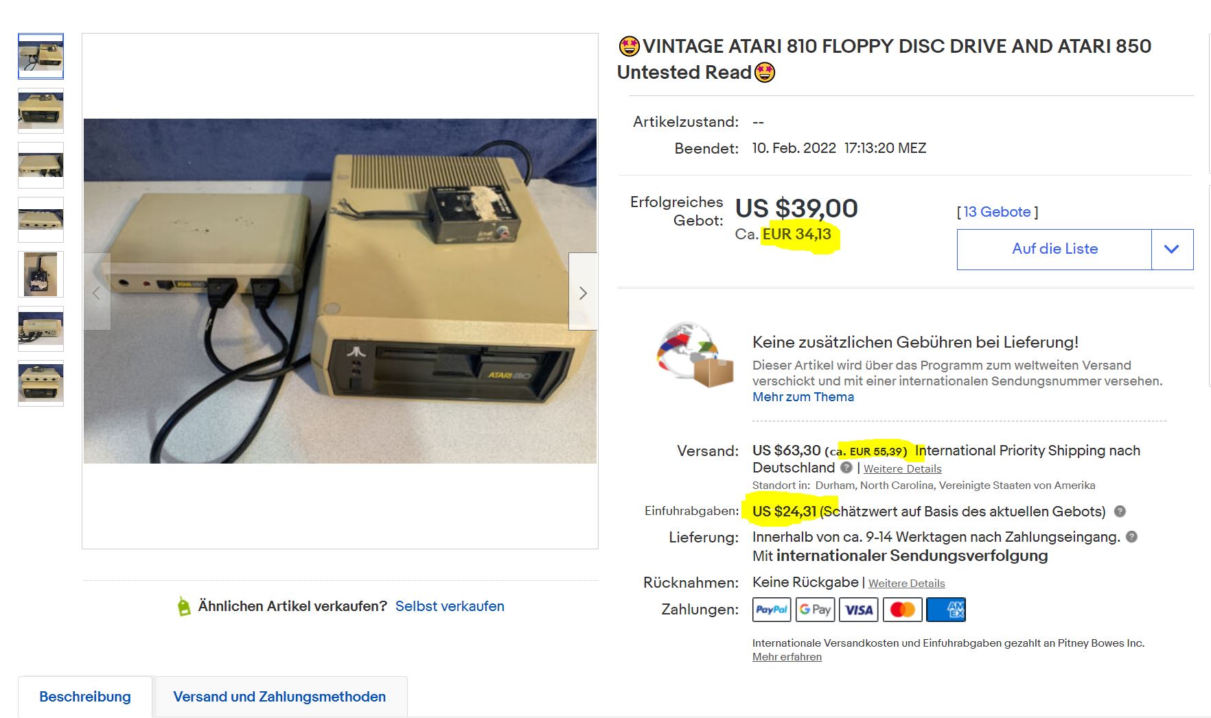 Hab mal eine Floppy aus den USA über eBay gekauft …. Nie wieder