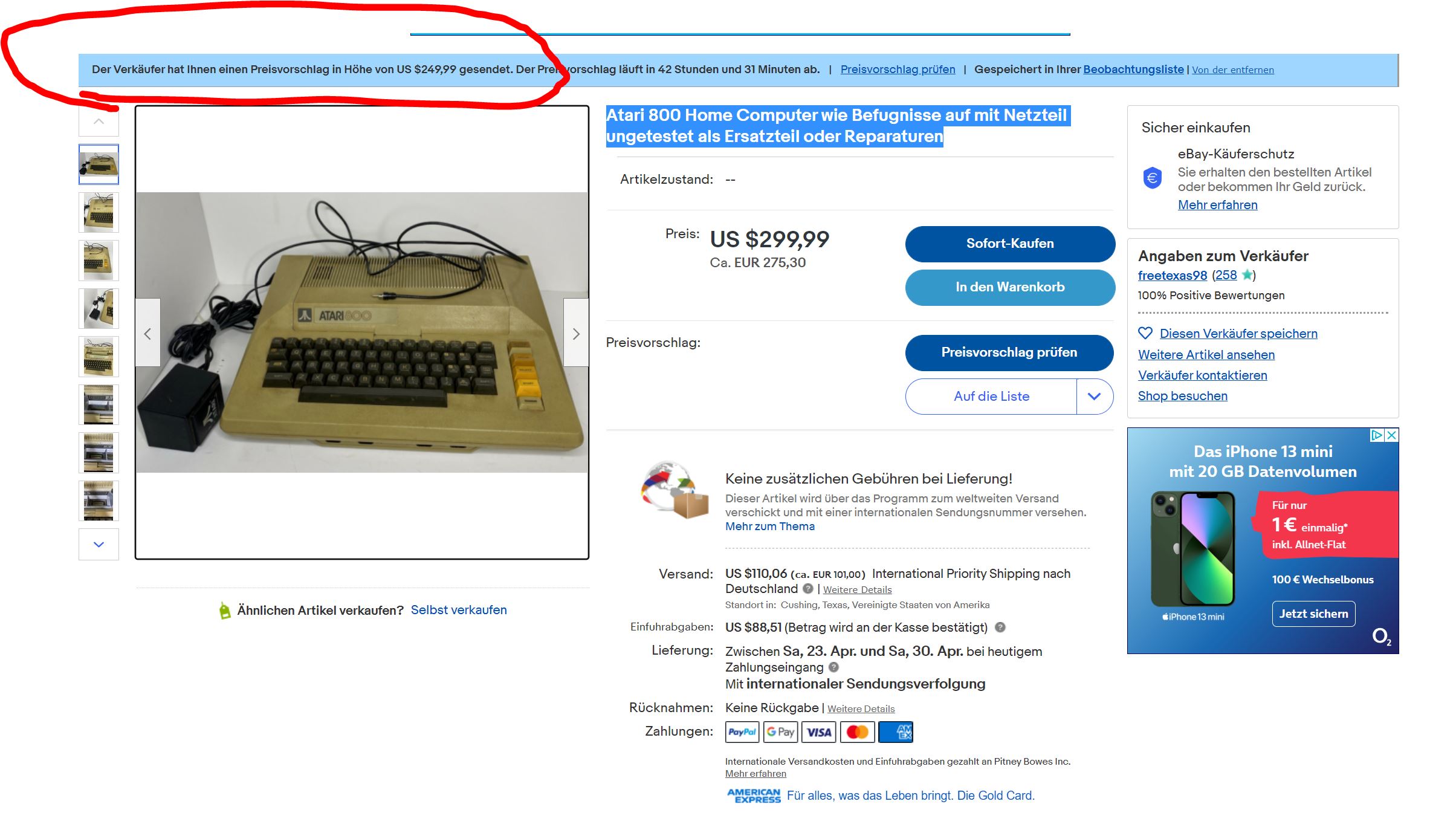 Ich glaube nicht dass man den für weniger kriegt.andymanone hat geschrieben: ↑01.03.2022 17:01Der Preis für Zoll/Steuer ist variabel und abhängig vom finalen Verkaufspreis, d.h. wenn man weniger bietet und der Verkäufer akzeptiert,