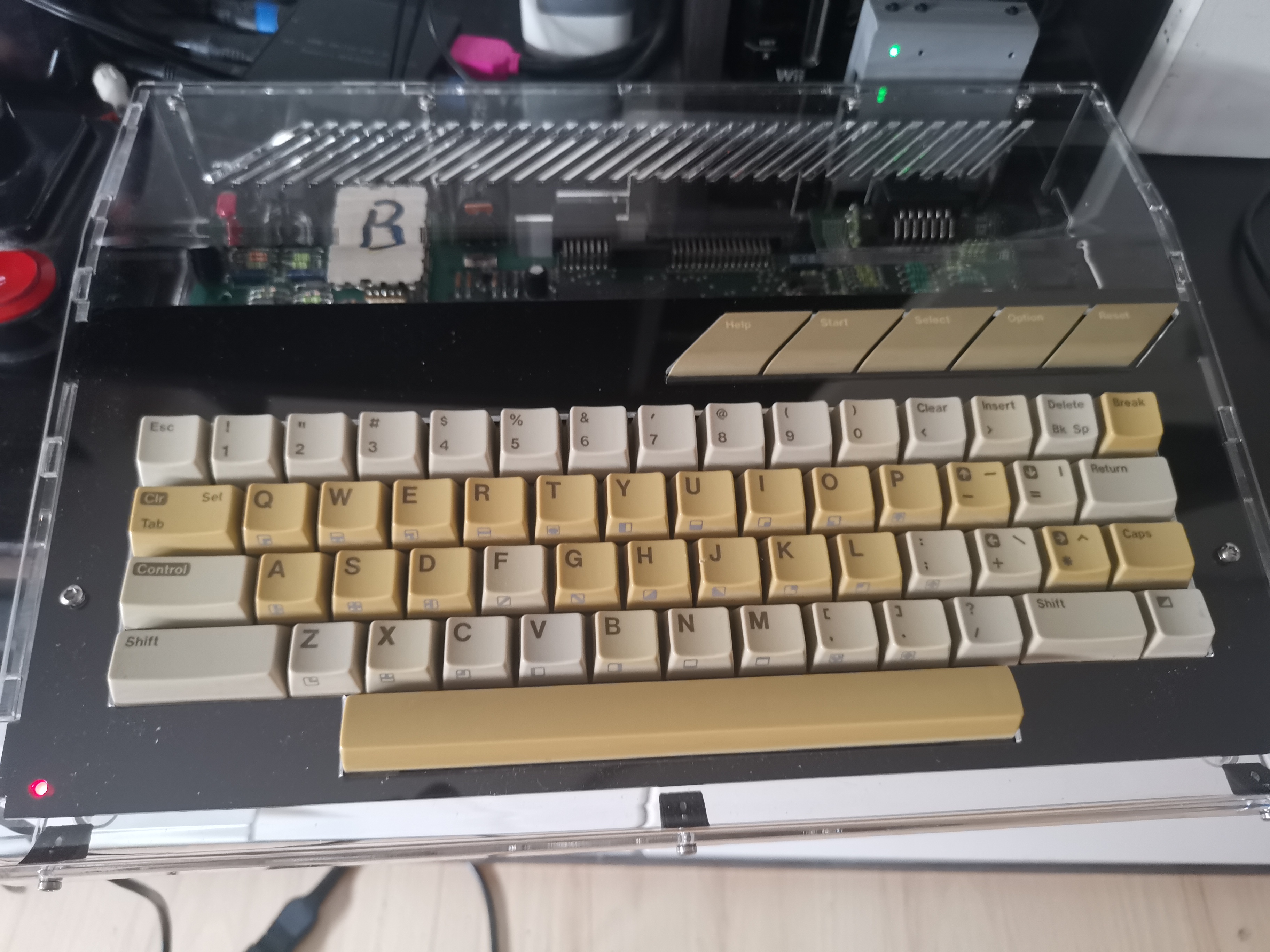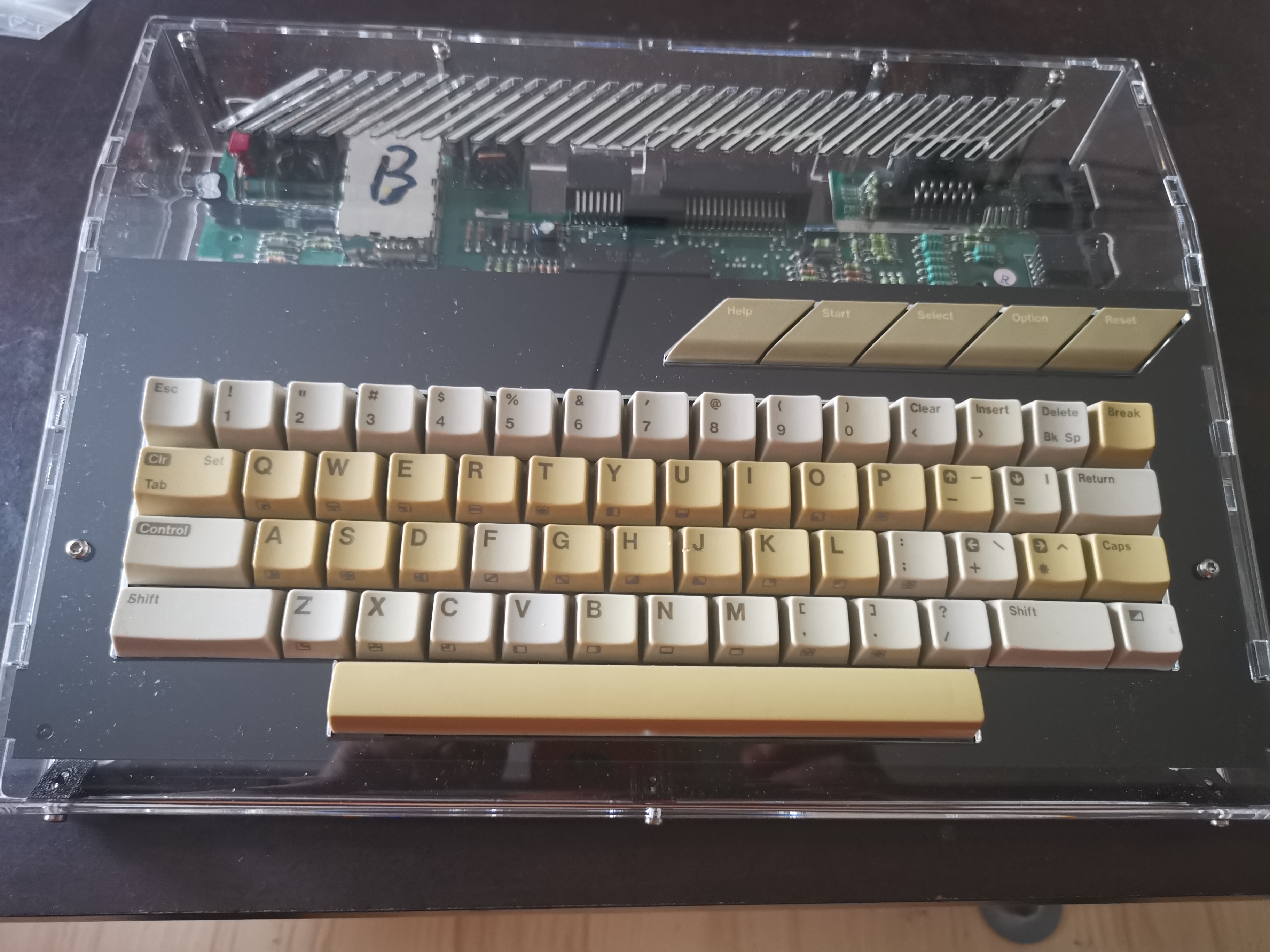 Schnell mal zusammengebaut und die XE Remake Platine provisorisch eingebaut