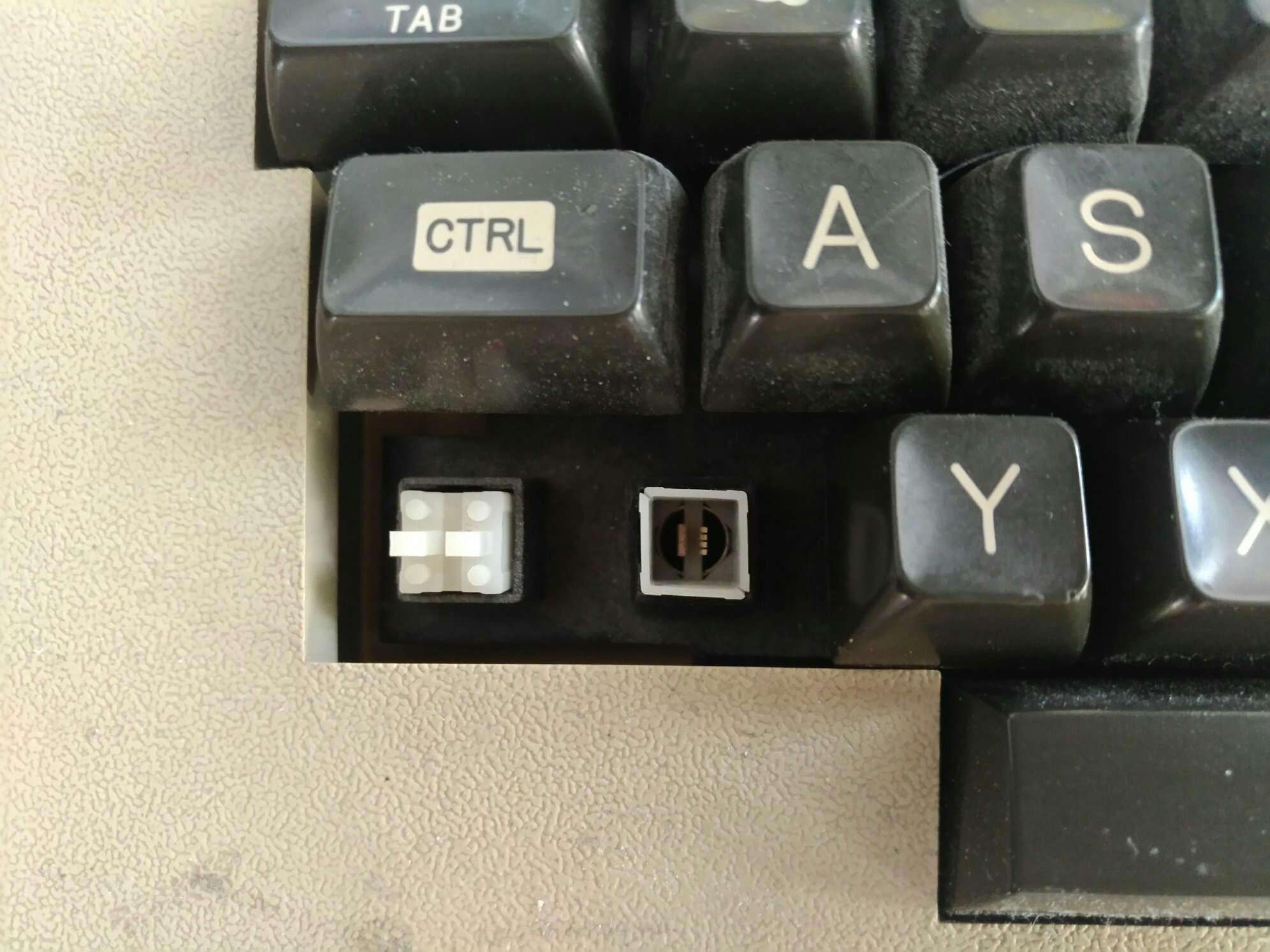 Es scheint wohl zwei unterschiedliche Tastaturen zu geben. Bei der anderen ist die Befestigung rechts.