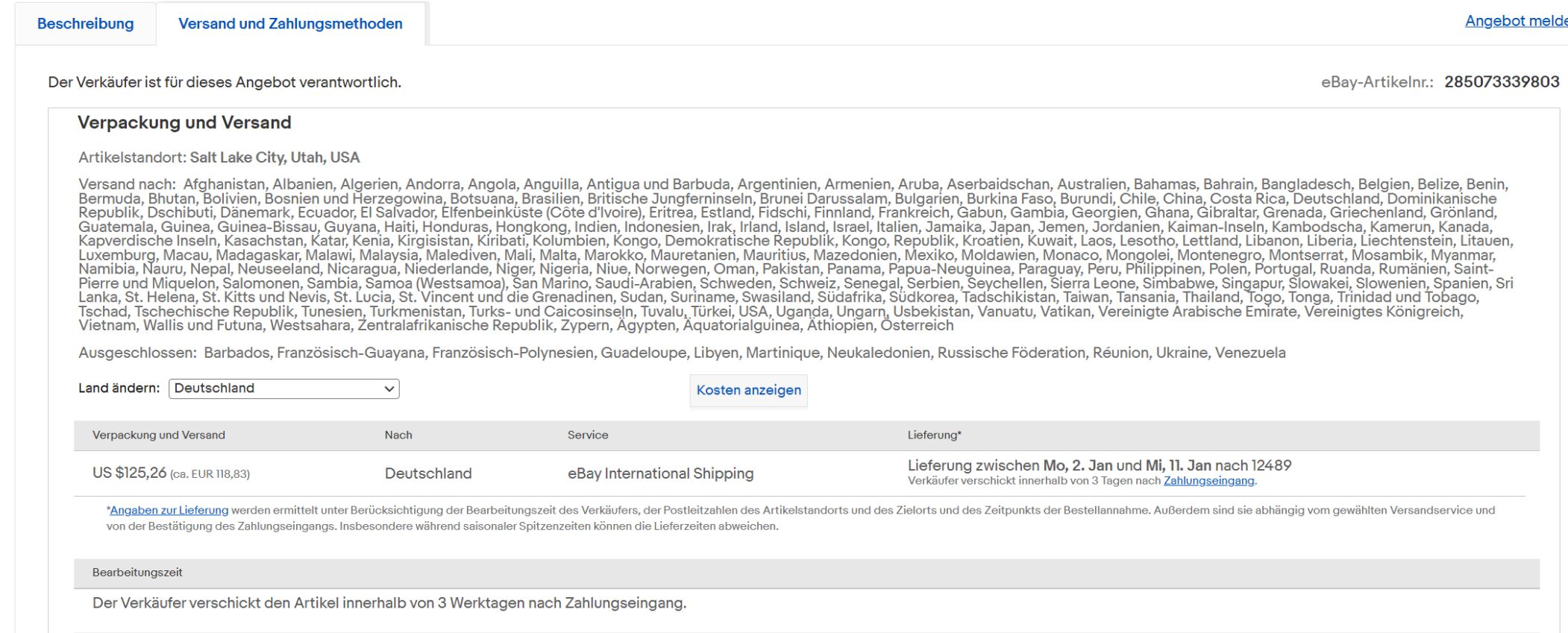 zzgl. Versand US $125,26 und Einfuhrgebühren, (leider kein Global Shipping program)!