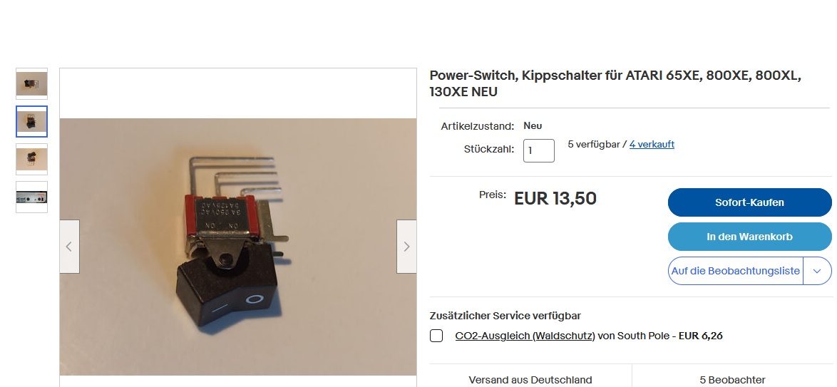 Ja, die kompatiblen XL/XE-Powerschalter von RND, die ursprünglich (letztes Jahr) bei reichelt um die 2.50 € gekostet haben, werden aktuell bei i-bäh für 13 € vertickt: