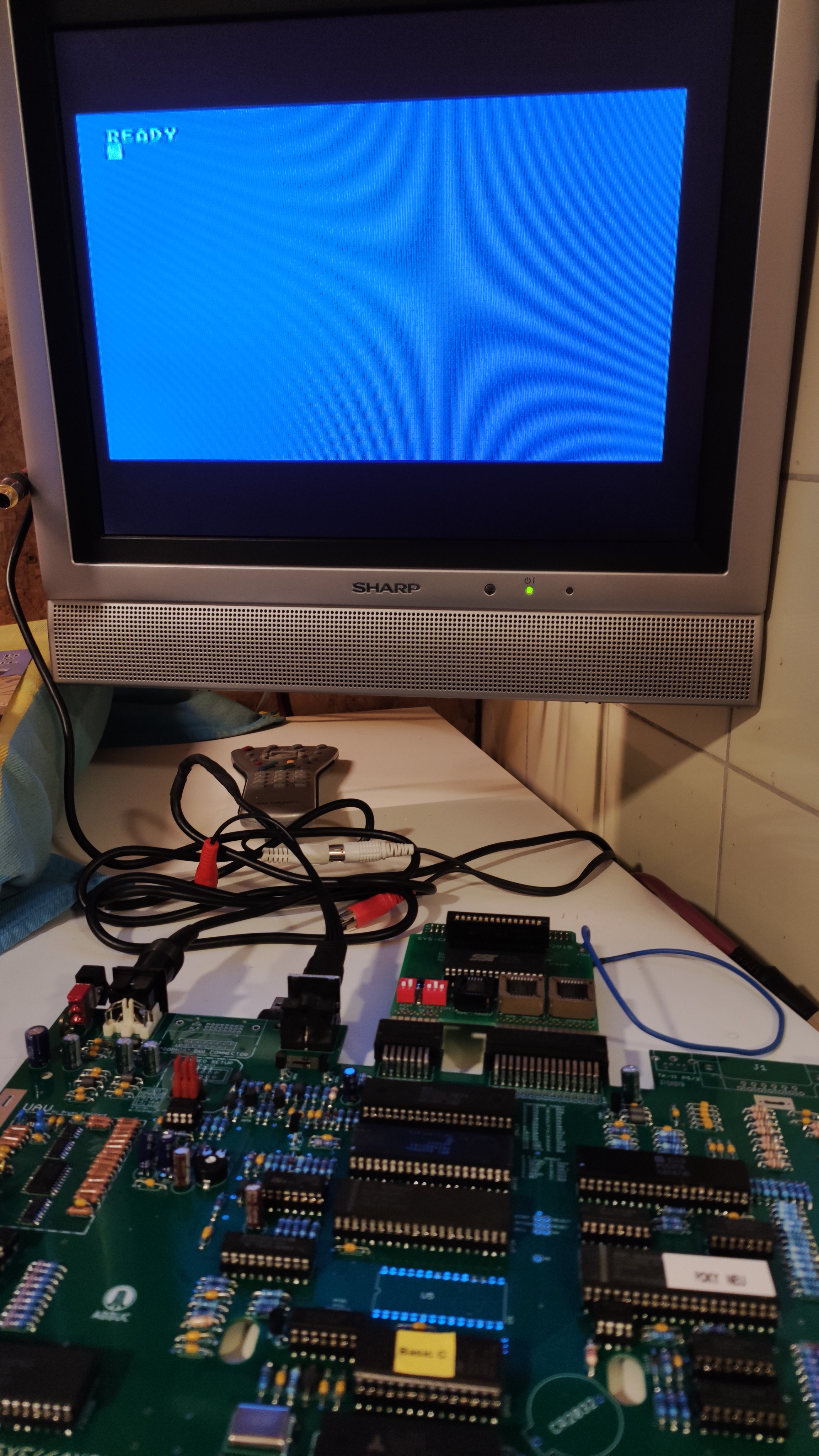 Noch kommt das OS vom Syscheck, aber Basic und RAM vom Board. Morgen dann wieder einen OS Sockel einlöten und sie restlichen Stiftreihen....