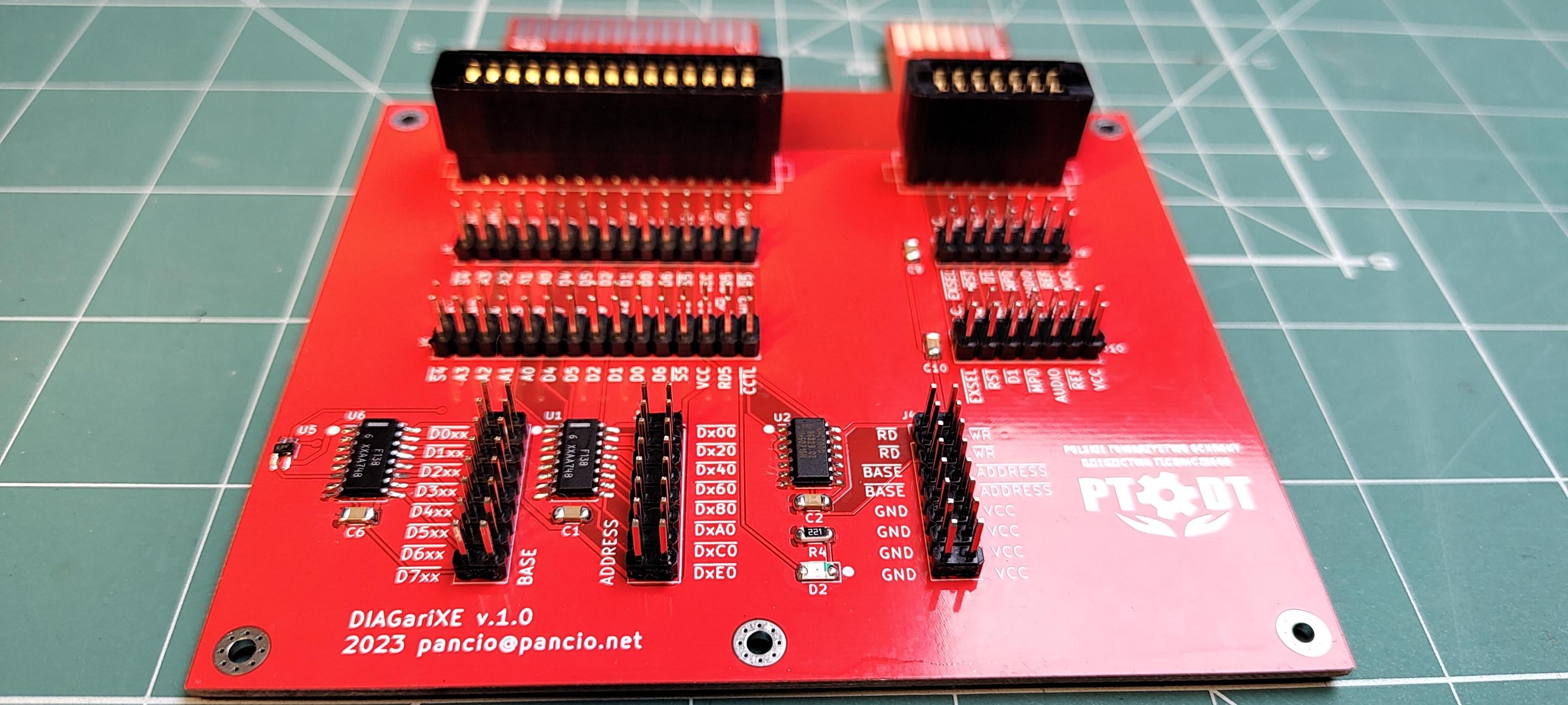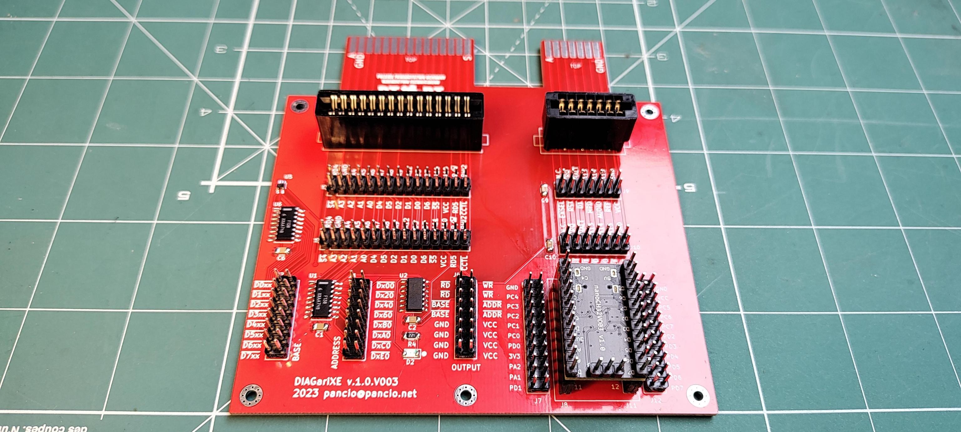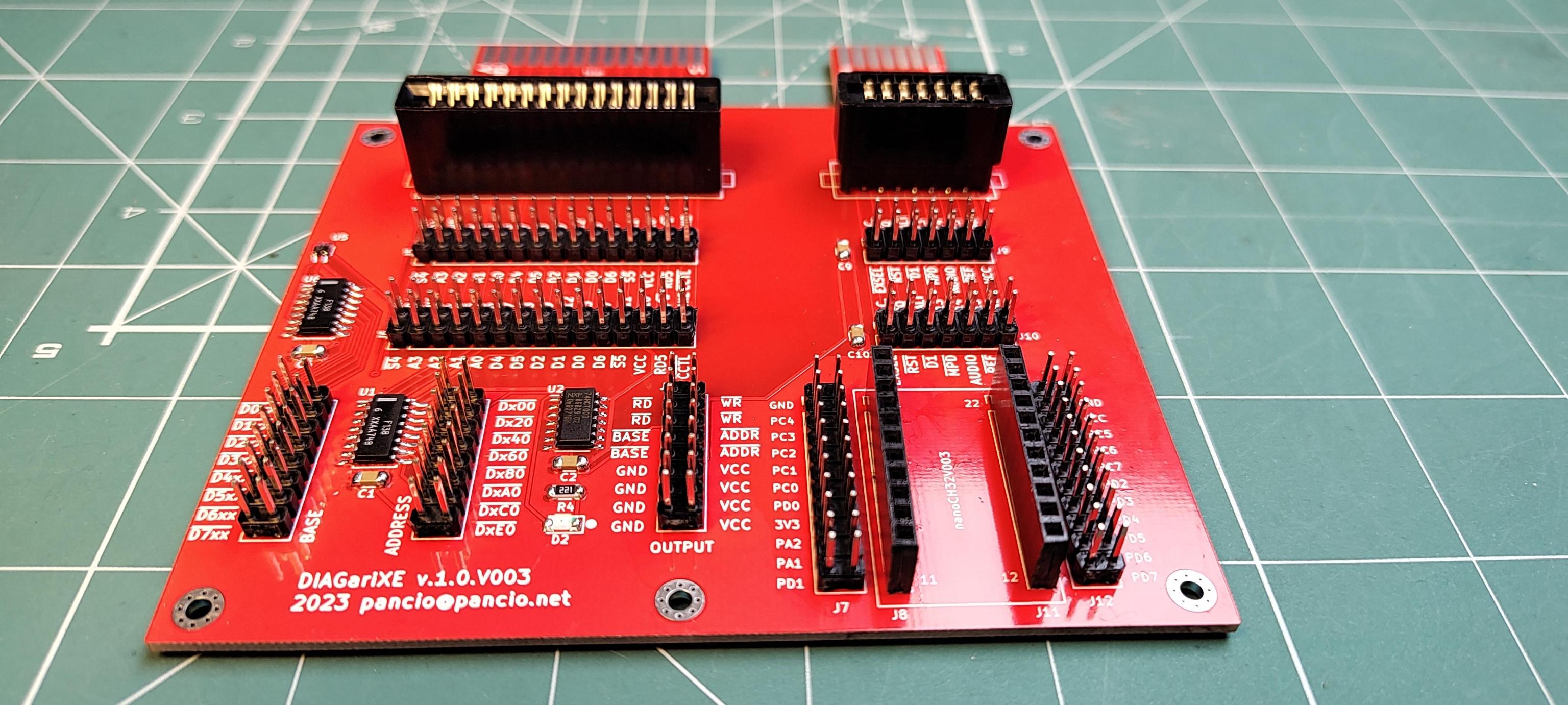 I would like to introduce new set of devices which is called AtarINO. At this moment the set contains two modules: DIAGariXE and DIAGariXE.V003. The main purpose of these modules is to make it easier to design extensions for Atari XE computer using direct access to data and address busses via special cartridge. Both devices have equipped with headers with all signals available on CART/ECI sockets. Additional signals, like decoded address window, /WR and RD Intel’s signals are generated by additional logic circuits – it’s good base to connect to Atari any kind of memory or other Intel’s based IC. The DIAGari were developed for more common tasks. The DIAGariXE.V003 has equipped with special headers for nanoCH32V003 development board which contains cheap, powerfully, 5V tolerant RISC-V CPU – this module may be use as high speed co-processor or for general purpose input/output device. Only your imagine is a limit :-).