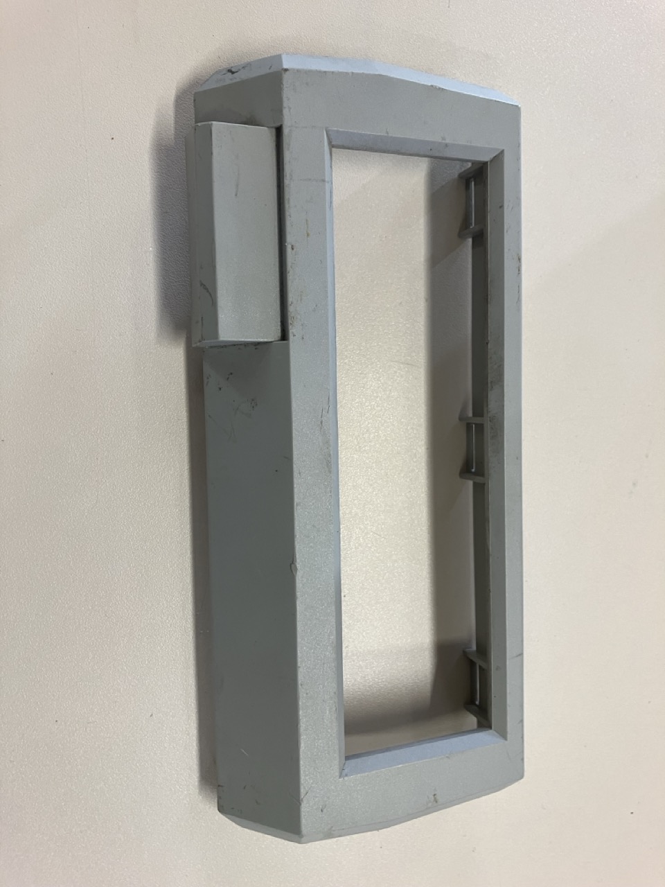 Ganz eindeutig das Gehäuse einer 1050, aber die Frontblende hat kein Loch für LED und Schalter (kein Mod, das ist so aus der Pressform), sowie die Rückblende nicht die trrapezförmigen SIO-Löcher und eine Abdeckplatte drüber. Auch die Vertiefungen für die Füße fehlen, stattdessen sind da feste Füße mit der Pressform angeformt.