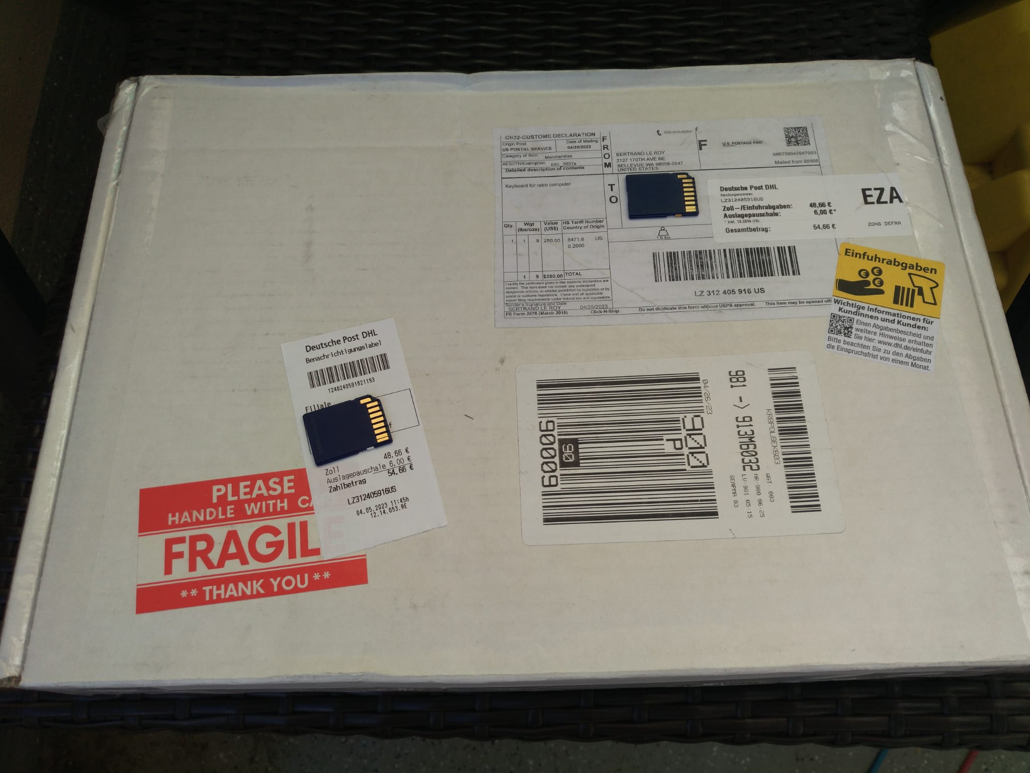 Auf Grund der hohen Portokosten, Gebühren und Steuern ... kostet die Tastatur am Ende über das Doppelte. Und wenn man mehr auf einmal bestellt wird es auch nicht günstiger, da das Porto ebenfalls höher ausfällt.