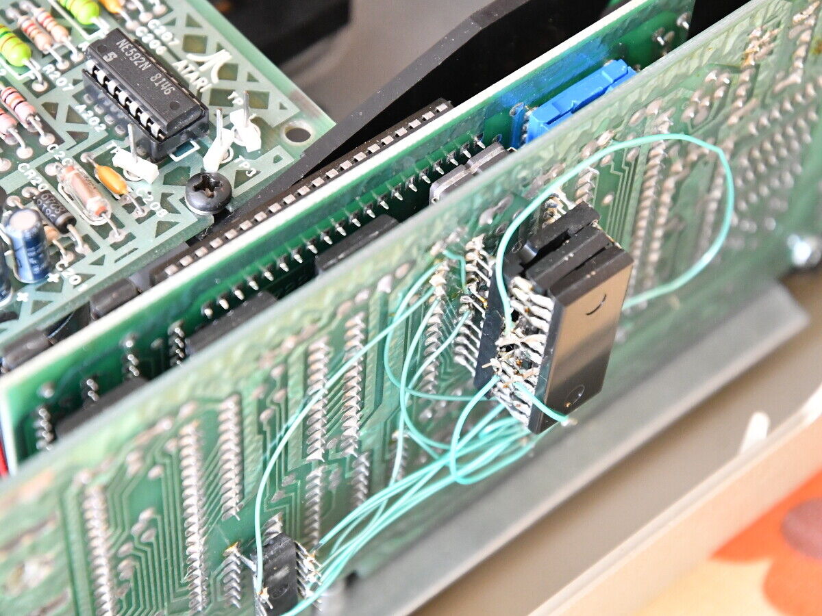 Mach mal mit Spucke die Oberfläche des obenen Chips etwas nass. Meistens kann man dann solange die Oberfläche nass ist, den Text erkennen der mal drauf war. Ist auf dem EPROM kein Aufkleber mit Beschriftung drauf?