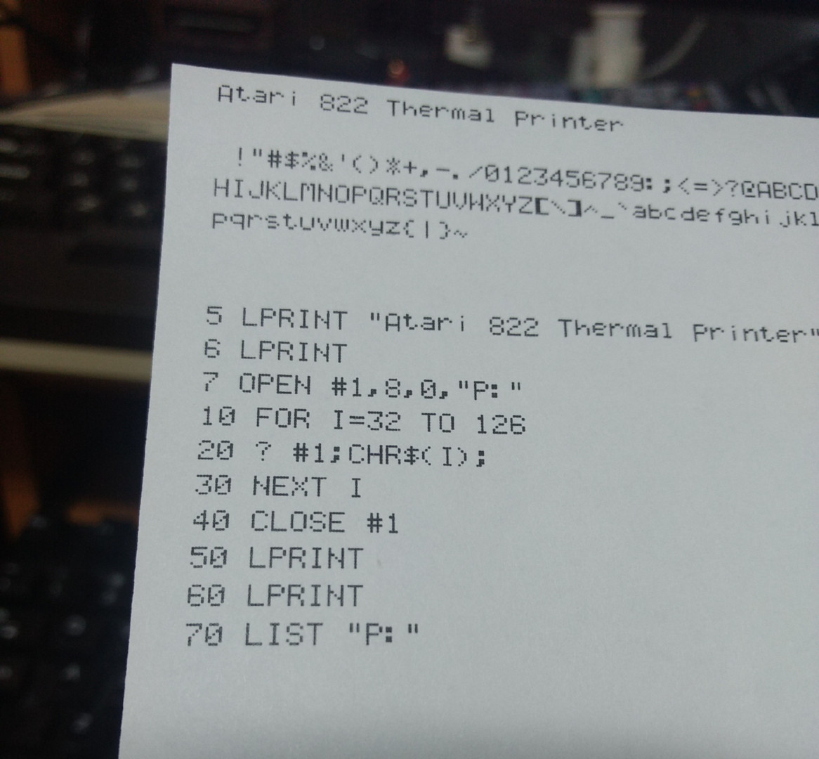 #FujiNet @jeffpiep is checking in the last of the #Atari 822 printing emulation, which provides graphics support! The secret? Using SIO command 'P' instead of the usual 'W', which causes the printer to accept 1 bit per pixel monochrome bitmap data in the same format as a GRAPHICS 8 screen. This was previously undocumented.