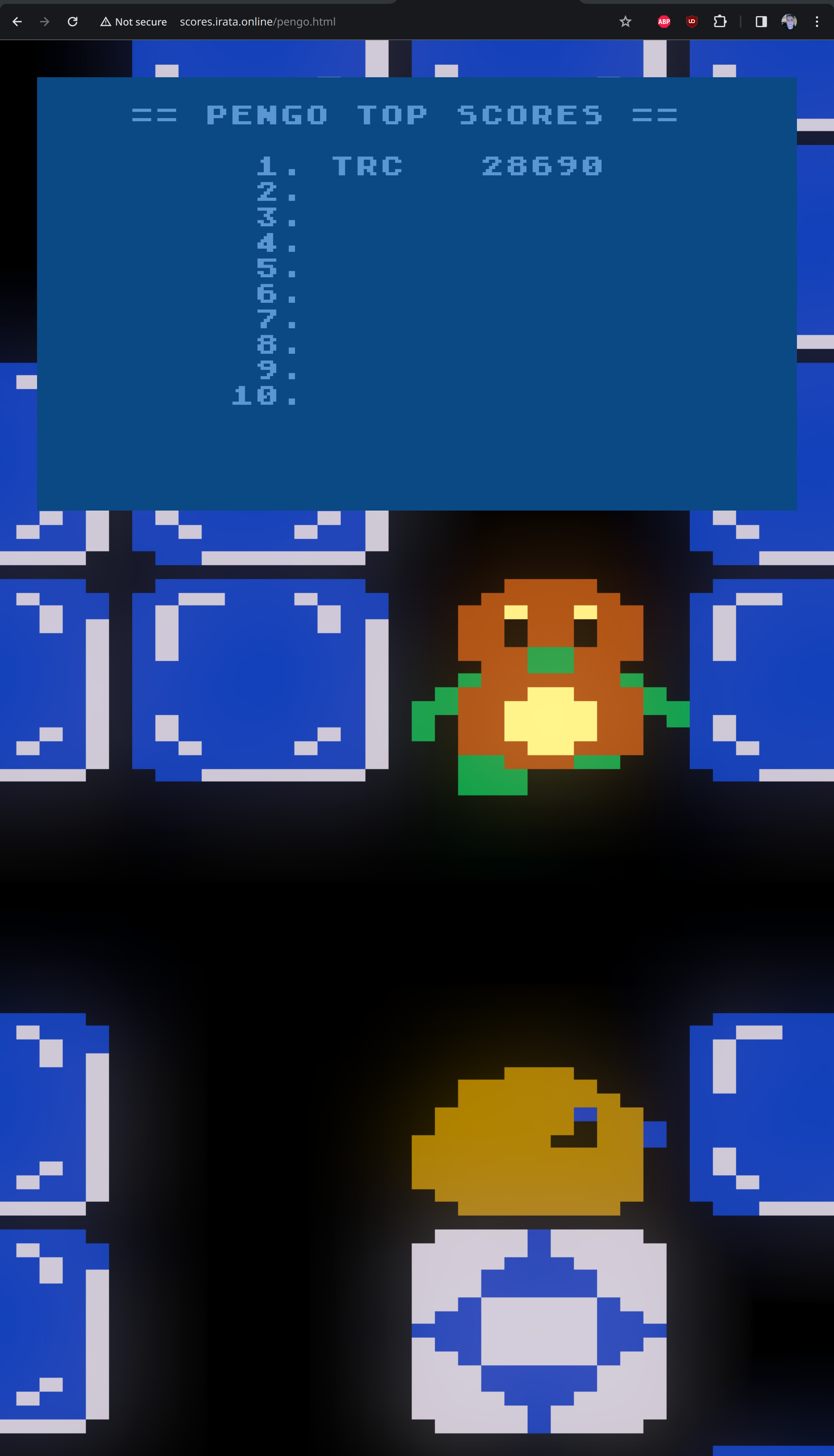 @here hot off the heels of Centipede, Pengo for #Atari8bit has now been #HighScoreEnabled.