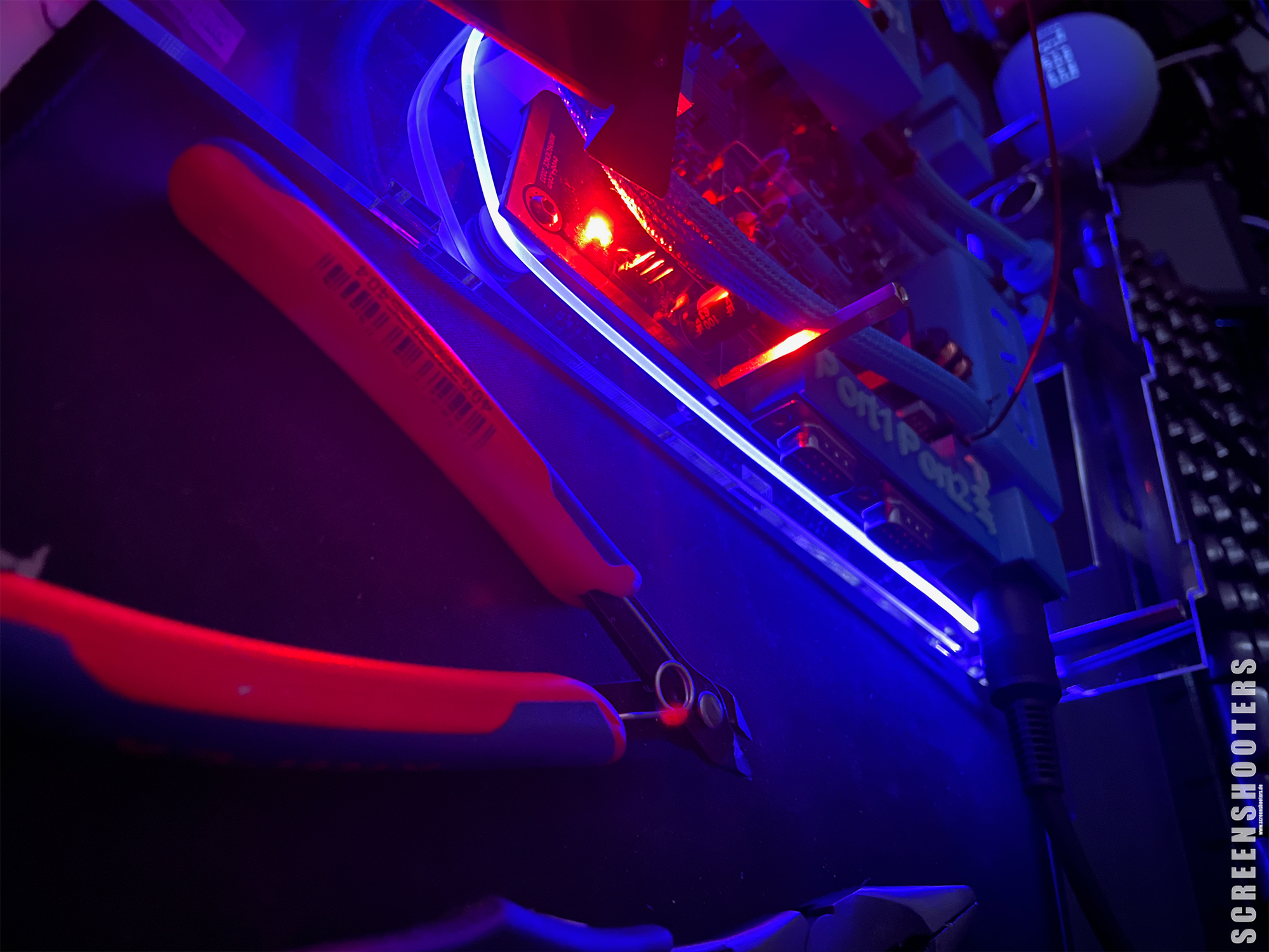 Mal schnell eingebaut, noch den LED-Streifen der passend zur Musik zappelt angebatscht: