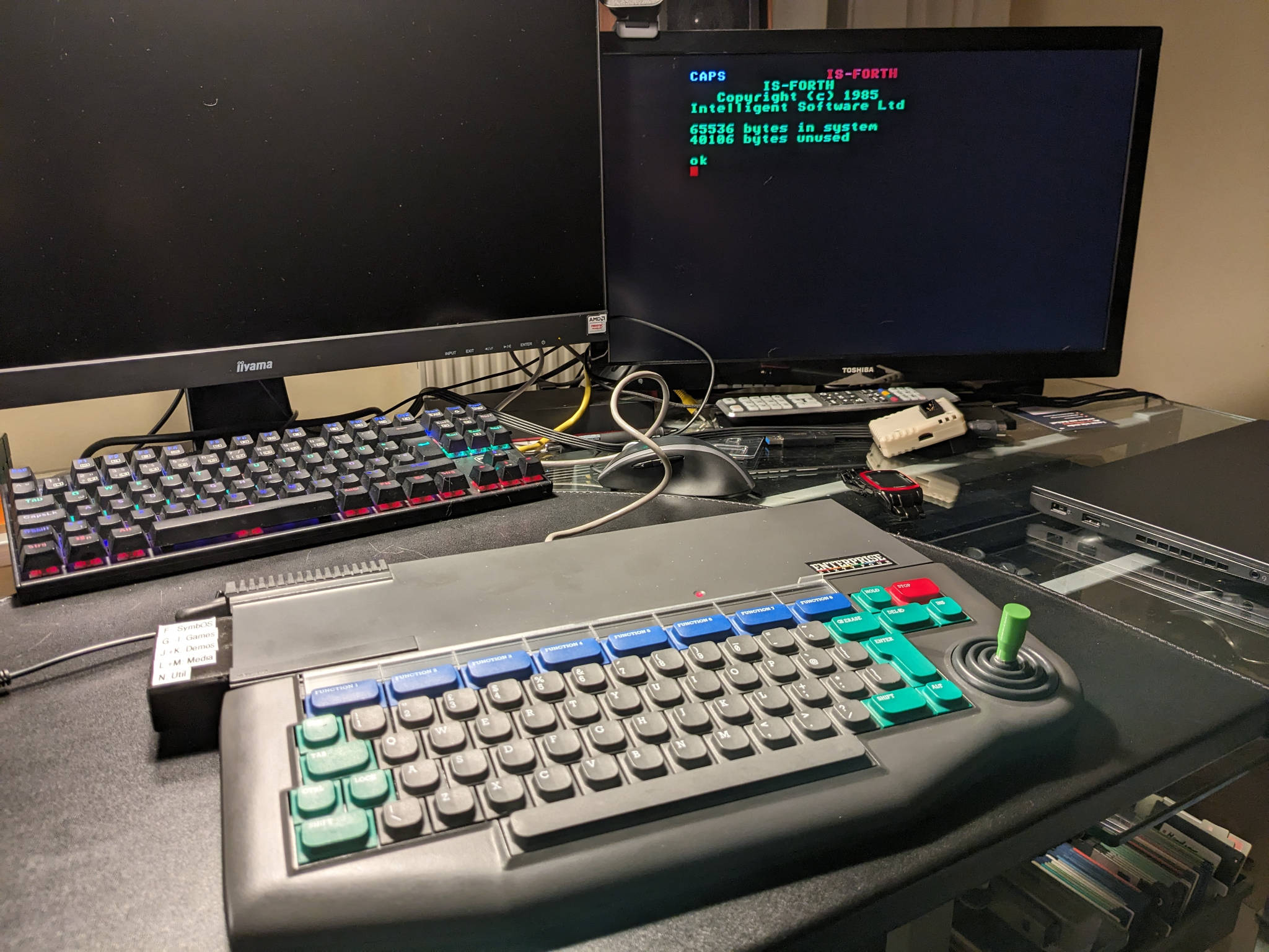 Das SD-Karten Modul bietet übrigens die Möglichkeit ein (primäres-) ROM zu laden, da der Enterprise "out of the box" keine Entwicklungsumgebung hat. Dieses ROM - BASIC, o.ä. - wird dann beim Starten ausgeführt. Hier sehe ich zu, FORTH ans Laufen zu bekommen, da ich das gerne mal ausprobieren möchte.
