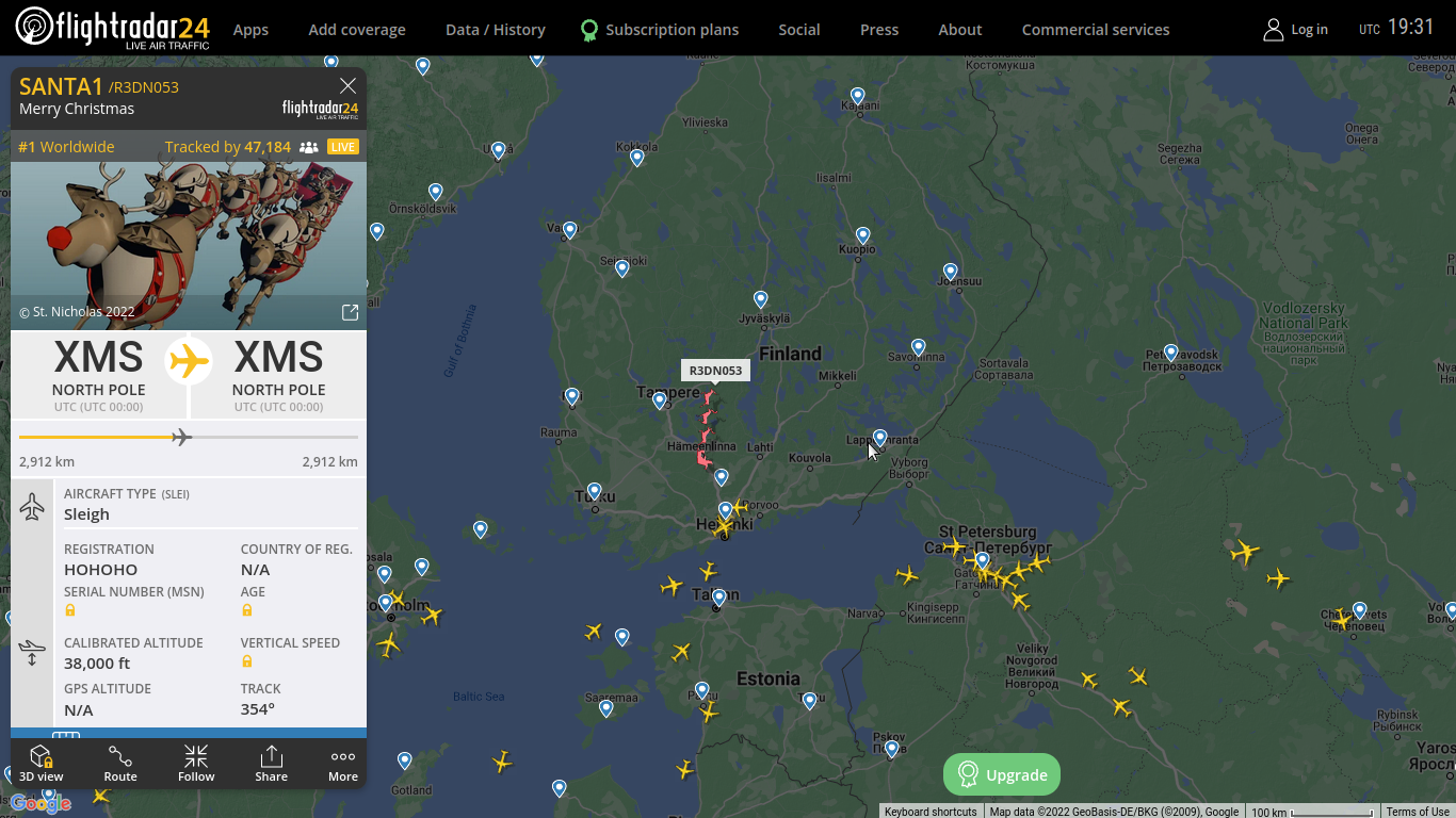 wer heute noch an der Existenz des Weihnachtsmannes zweifelt, der schaue jetzt bei flightradar24.com rein.