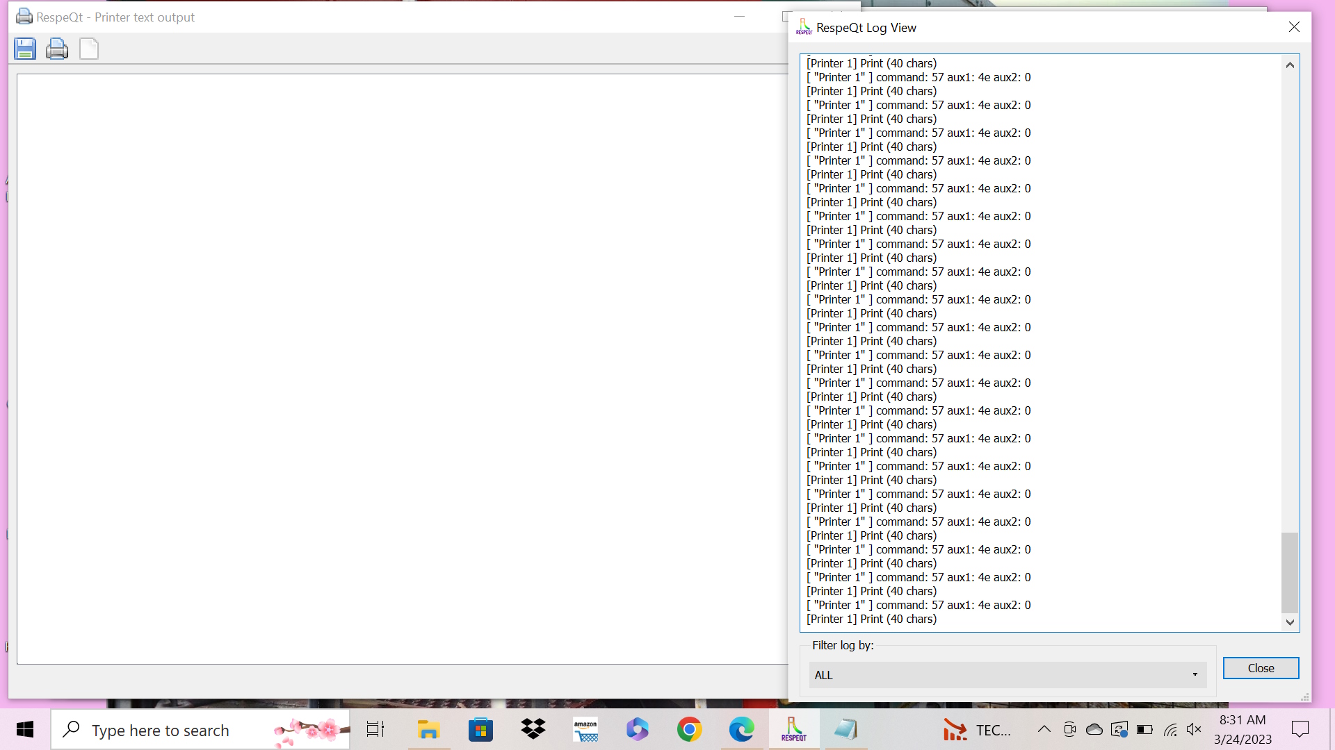 Tschüßtep392 (auf AtariAge) hat geschrieben:I think he misunderstood the problem. The problem is that there is nothing in the text window to print. This is the result from trying to print a couple lines of text from Atariwriter. I've also tried printing from other applications with the same result. I'm not sure how to interpret the log window. Does it look normal?