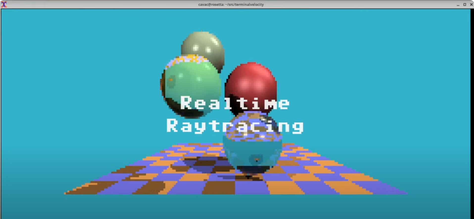 „Terminal Velocity“, eine Grafikdemo, die im Linux-Terminal läuft
