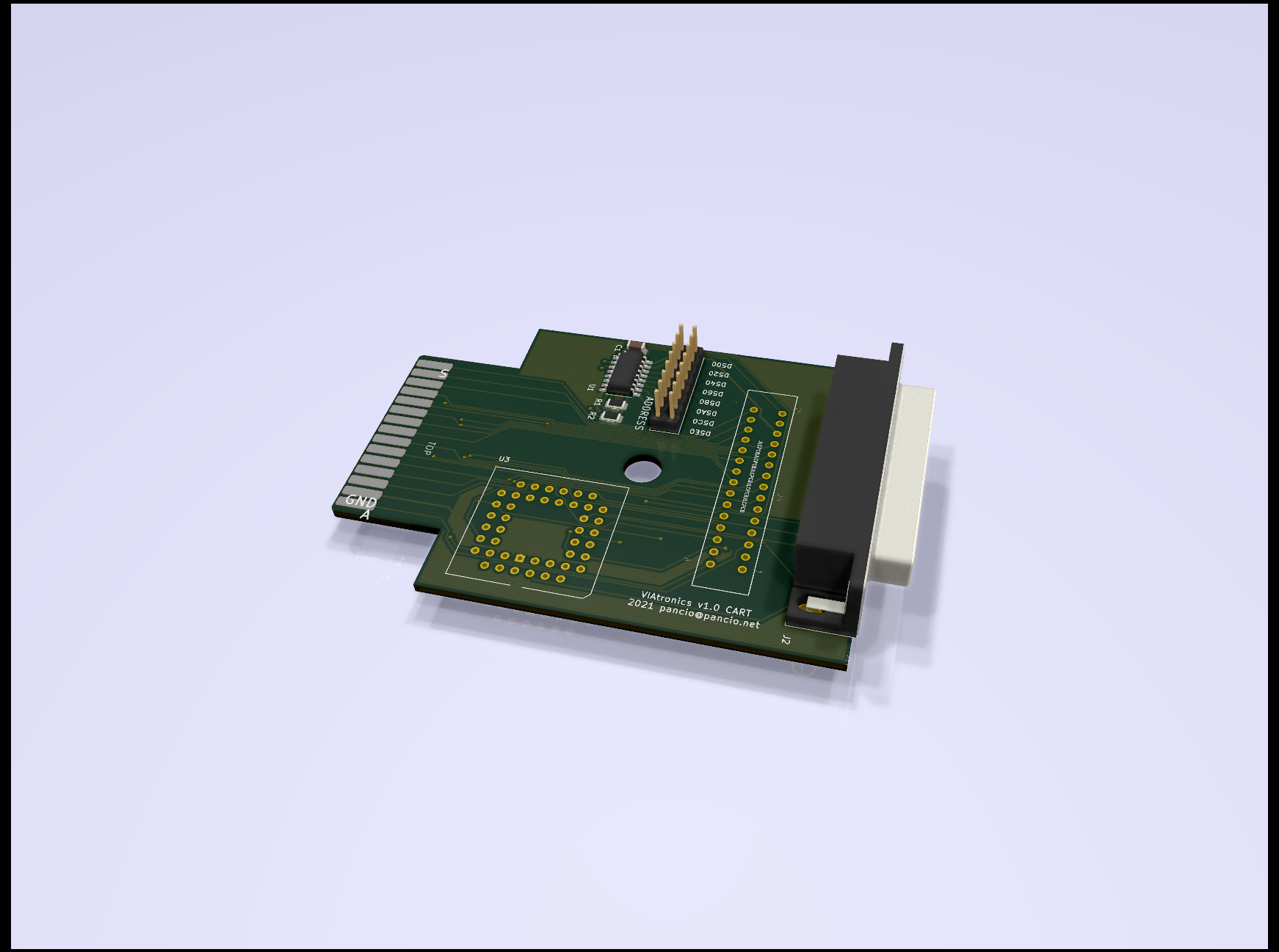 PCB based on standard CART/ECI slot contains VIA6522 two 8-bits parallel ports with control signals. Additional IC 74HCT138 is use as address decoder. All required by printer signals are connected to DB25 female port. On the PCB you may find selector for device address which can be selected from $D100-$D1E0 or $D500-$D5E0 with $20 step.Additional four pin header are connected to PA/PB/CA/CB signals and might be use for other task depend of your idea :-)If you are using cartridge e.g. Koala Illustrator or some text editor, you may use it together with VIAtronics but you need to check addresses used by cartridge to avoid conflict with VIAtronics.Project is made as Free Hardware - full documentation will be available on my page: https://systemembedded.eu