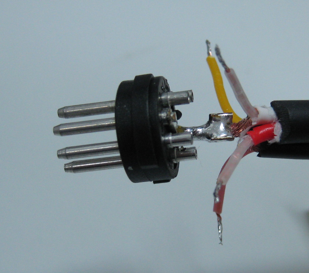 In jungen jahren habe ich gerne auch Chinch-Leitungen selber gebastelt, da hier die Leitungen bei Stereo meist aus 2 einzeln ummantelten Leitungen + Schirm bestanden, wird hier der Schirm auch als generelle Masseleitung gebraucht, man muß sie beidseitig verlöten. Bei meinen Monitor-Adaptern zum Atari ST brauchte ich 3 Adern für RGB, 2 für Sync, eine für Audio out, also 6 Leitungen zur Signal Übertragung. Da ich nirgends eine Mehrader-Leitung + Schirm mit ungerader Leitungszahl fand, habe ich mich für solche mit 6 Innenleiter entschlossen und hier ebenfals Masse über den Schirmm geleitet, also auch beidseitig verlötet ...