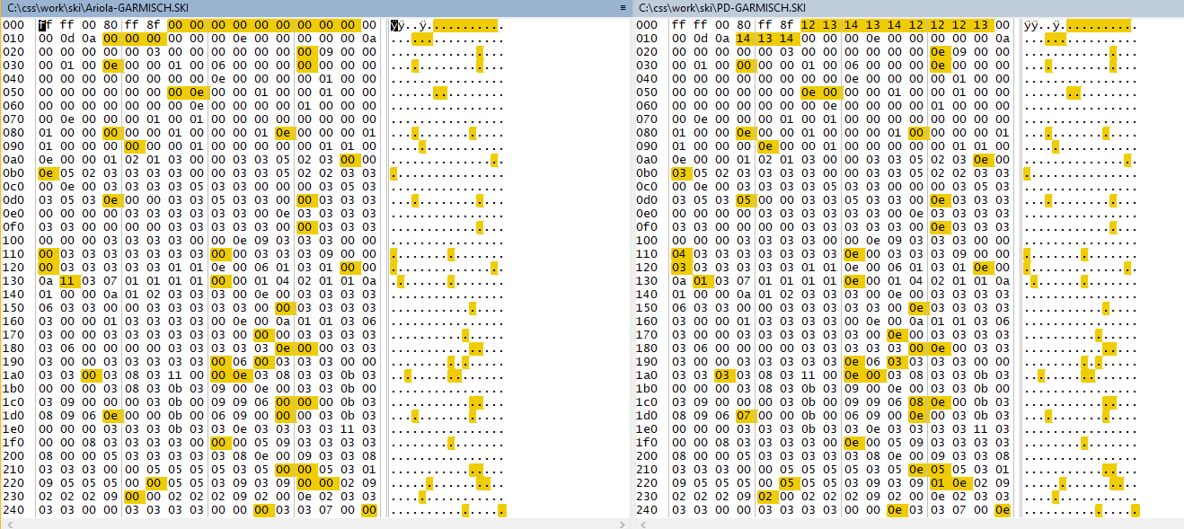 Bei beiden heißen die Strecken *.SKI und die PD-Version hat auch einige identisch benannte Strecken.