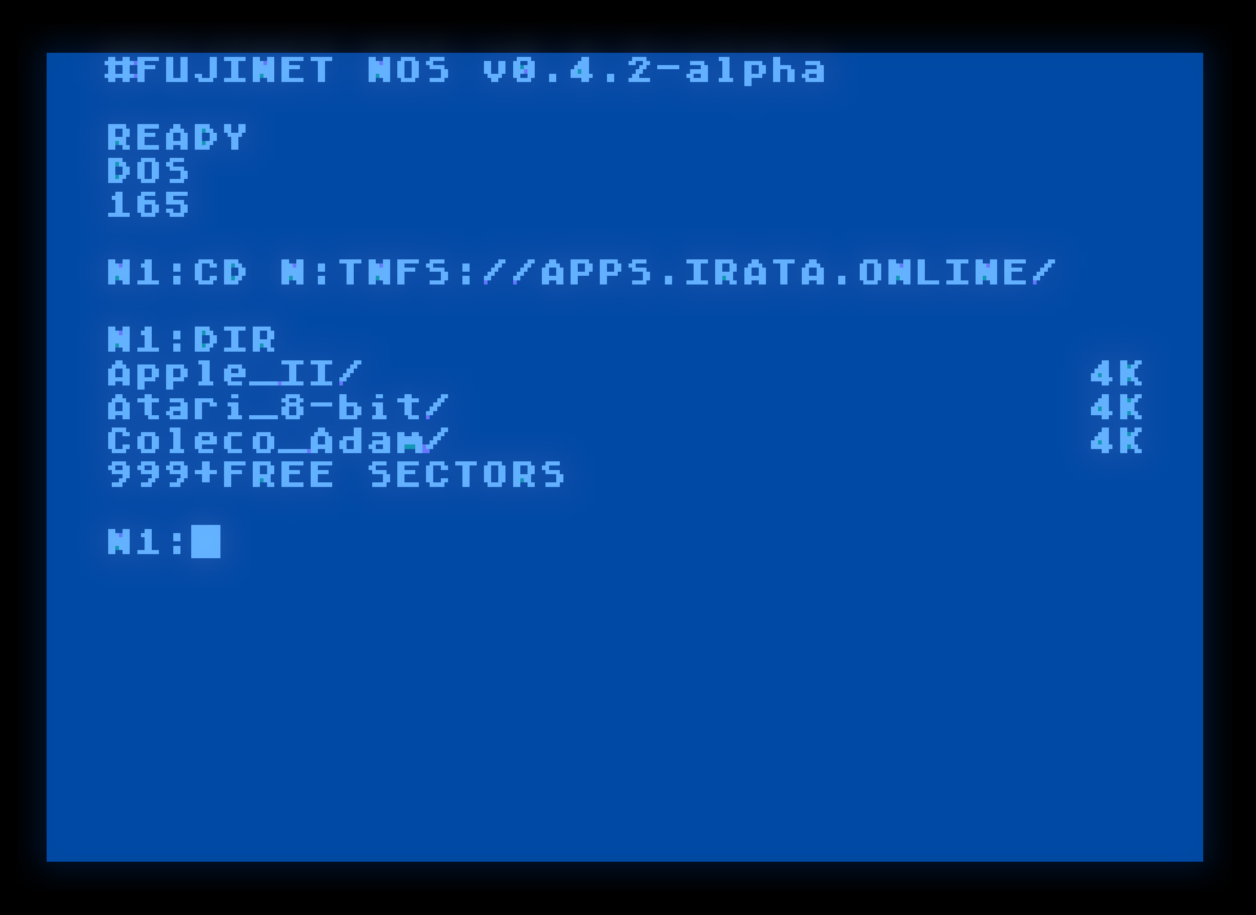 Für diejenigen, die es nicht wissen. NOS ist eine bootfähige Diskette, die nur das N:-Gerät und einen einfachen Befehls-Parser enthält und ein typisches DOS für die #FujiNet-Nutzung ersetzt.