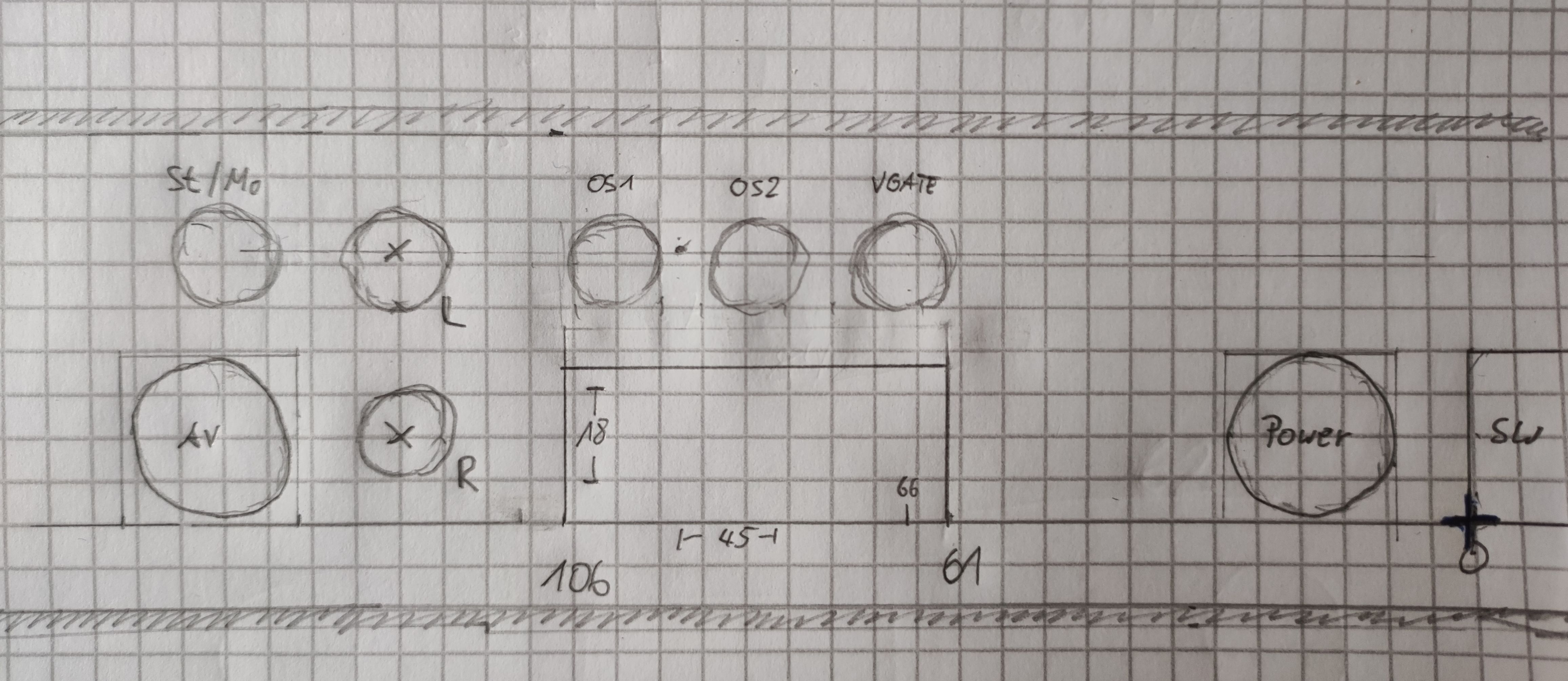 Mein Plan für "meine" Rückwand ist fertig. Durchgehend mit 3 Stück 8mm Löchern (Für die Druck-Schalter) und 2 Stück 8mm Löchern für Cicnch Buchsen.