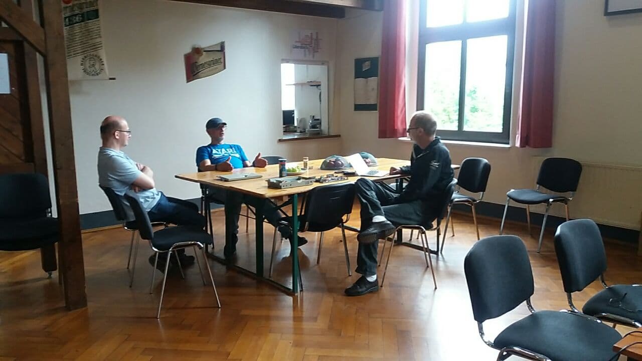 So startete ich mit meinen wichtigsten Atari-Utensilien am Samstag Mittag in Richtung Vogtland voller Fragen und Problemen was Software / Installation WUDSN etc. angeht. So schlug ich vor der Schützenhalle um 22 Uhr auf und traf dort schon ein paar erste Atarianer - die beiden von mir mitgebrachten Kisten Bier waren schnell rausgeholt und man konnte erste Eindrücke sammeln.