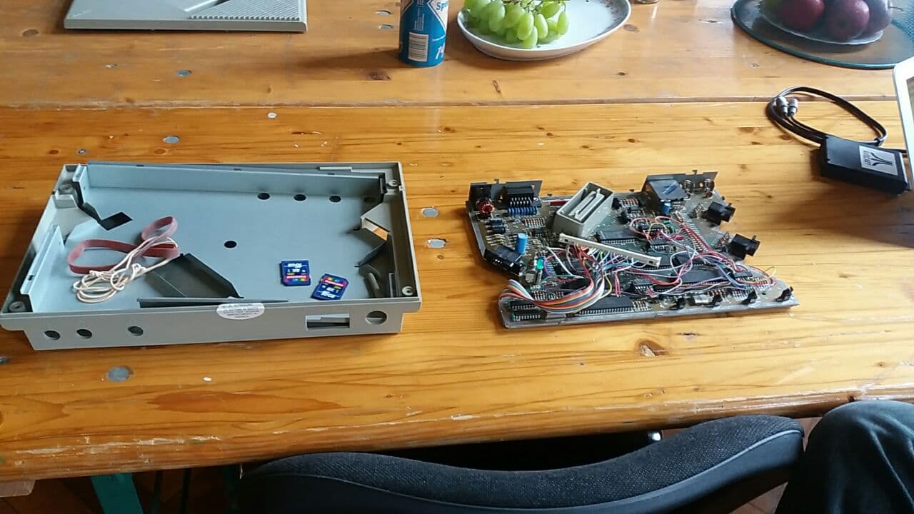 Wir schraubten, quatschten, präsentierten, fragten, tranken, lachten... mein lieber Tischnachbar Ulli machte sich gleich eifrig über meine Fujinet her und updatete sie geschwind, wir brachten sie tatsächlich relativ schnell zum laufen, Thema Verbindung zum iMac sollten wir aber erst am nächsten Tag lösen.