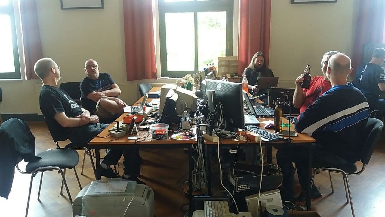 So startete ich mit meinen wichtigsten Atari-Utensilien am Samstag Mittag in Richtung Vogtland voller Fragen und Problemen was Software / Installation WUDSN etc. angeht. So schlug ich vor der Schützenhalle um 22 Uhr auf und traf dort schon ein paar erste Atarianer - die beiden von mir mitgebrachten Kisten Bier waren schnell rausgeholt und man konnte erste Eindrücke sammeln.