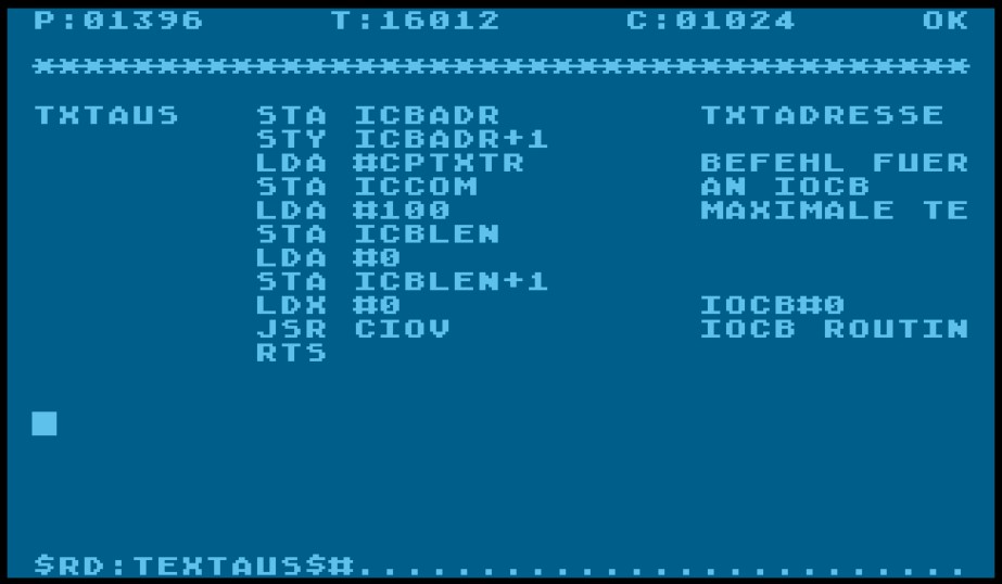Noch ein kleiner Nachtrag, für alle die eines der Assembler Listings ausprobieren möchte, aber sich nicht in der Bedienung des ATMAS-Assemblers auskennen.