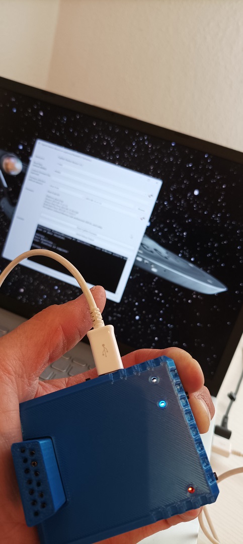 Bei der ganzen Aktion den Knopf A am FujiNet gedrückt lassen. Dauert ca. 2-3 Minuten. Baud Rate bei 460800. Und Krampf in der Hand.