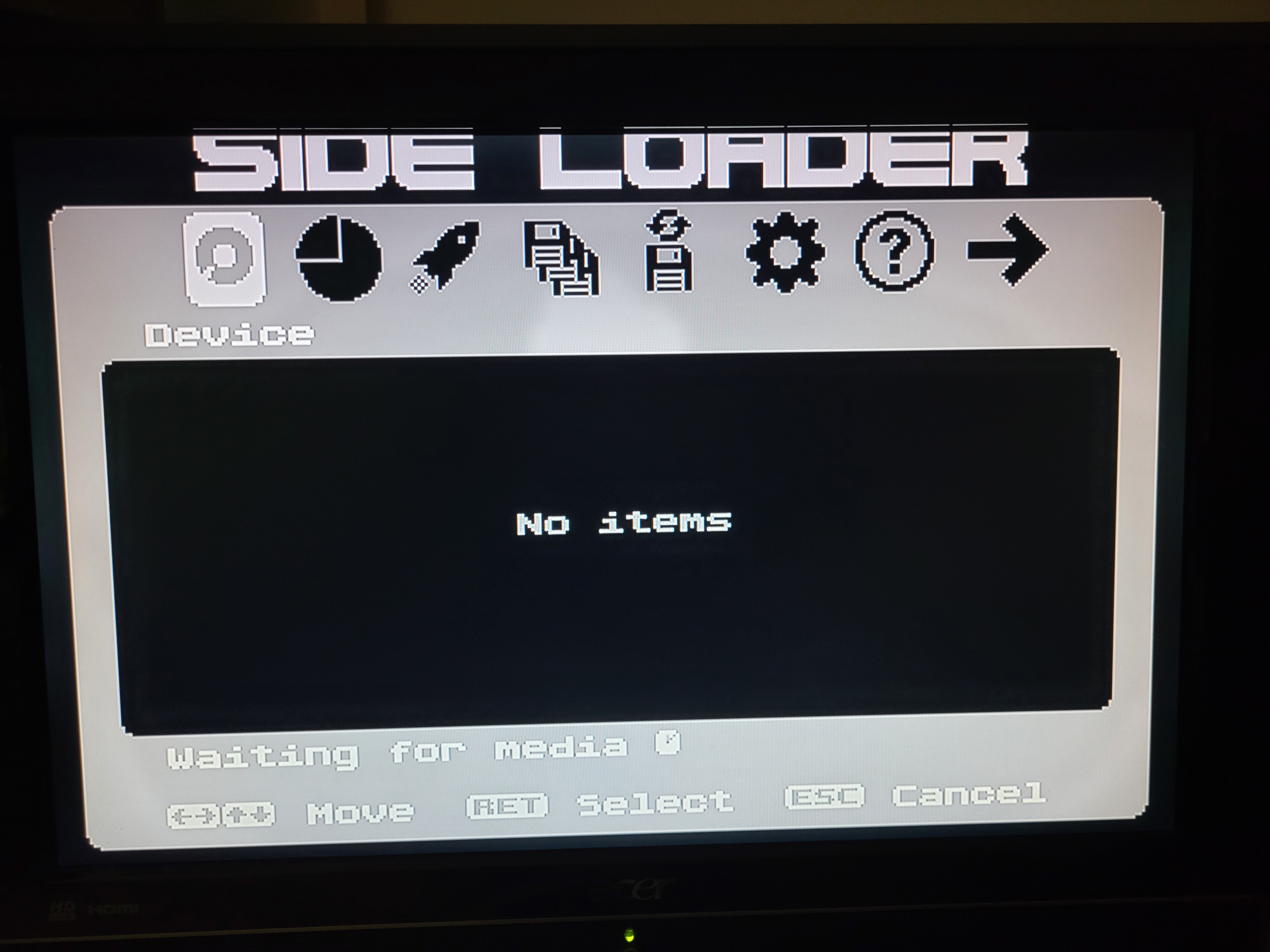 Nach Einschalten des Computers, wird stets ein SIDE Gerät gesucht (was ich nicht habe). Auf Tastatureingaben reagiert das Menü nicht, nach ein paar Minuten verschwindet die Gerätesuche und es bleibt nur "SIDE Loader" stehen, man kann nichts machen. Reset oder Neustart führt zum gleichen Verhalten. Mittels Help-Button beim Reset/Neustart komme ich leider nicht in die Konfiguration.