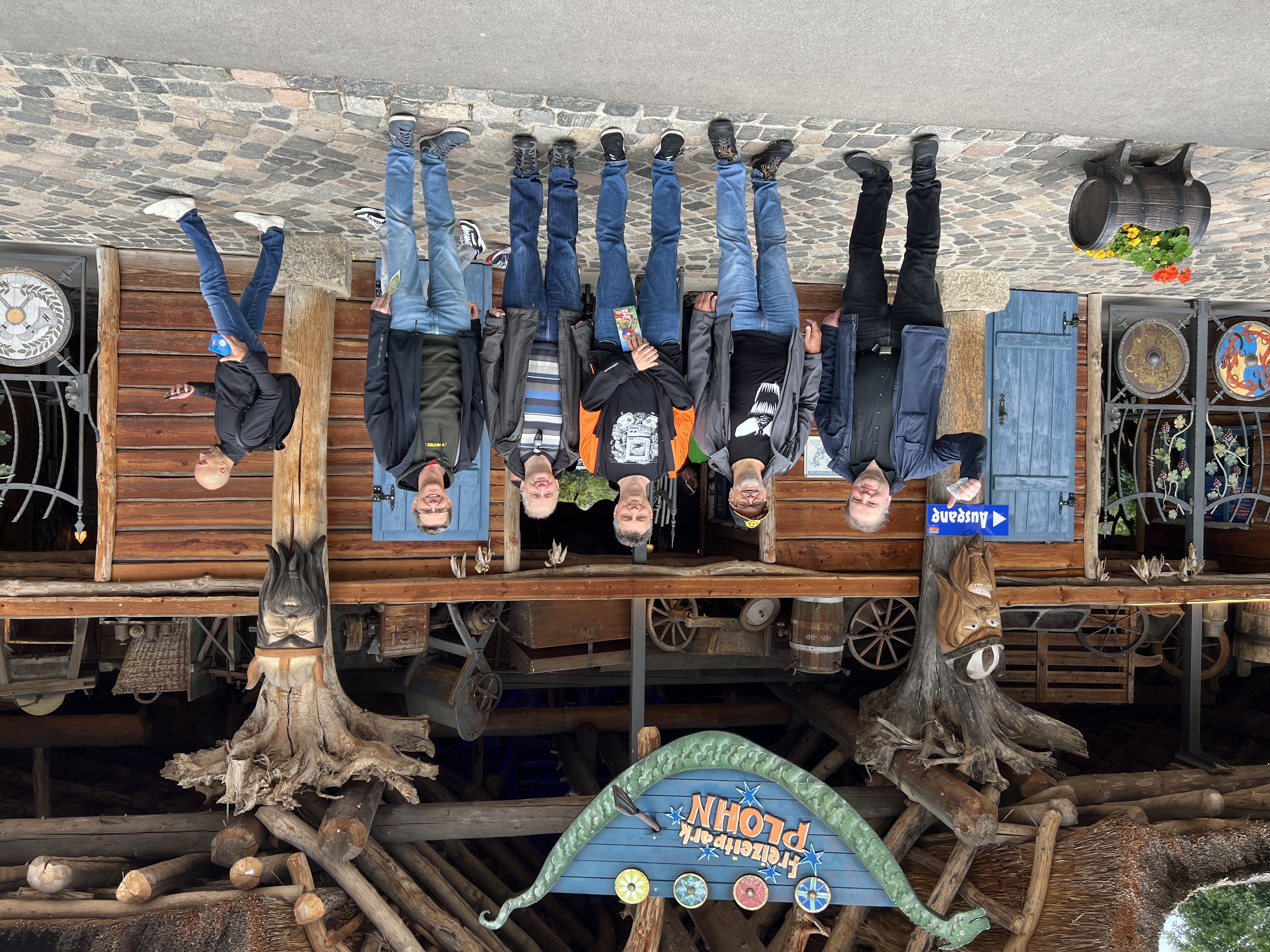 Bilder aus dem Freizeitpark Plohn. Das Gruppenfoto passt zur Achterbahn