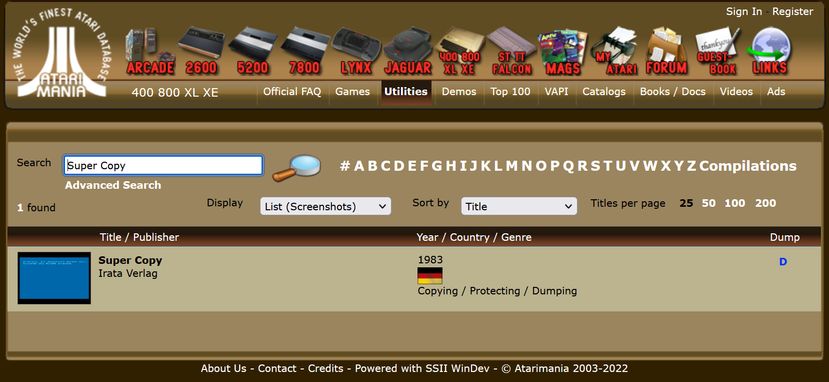 .Danke für den Tip. Kannst Du mal ein Screenshot posten, damit ich nicht so lange suchen muß ...CharlieChaplin hat geschrieben: ↑05.09.2023 18:43Dann mal "Super Copy" vom Irata-Verlag ausprobieren, das macht aus max. 32K single-stage/monolithic ML Programmen