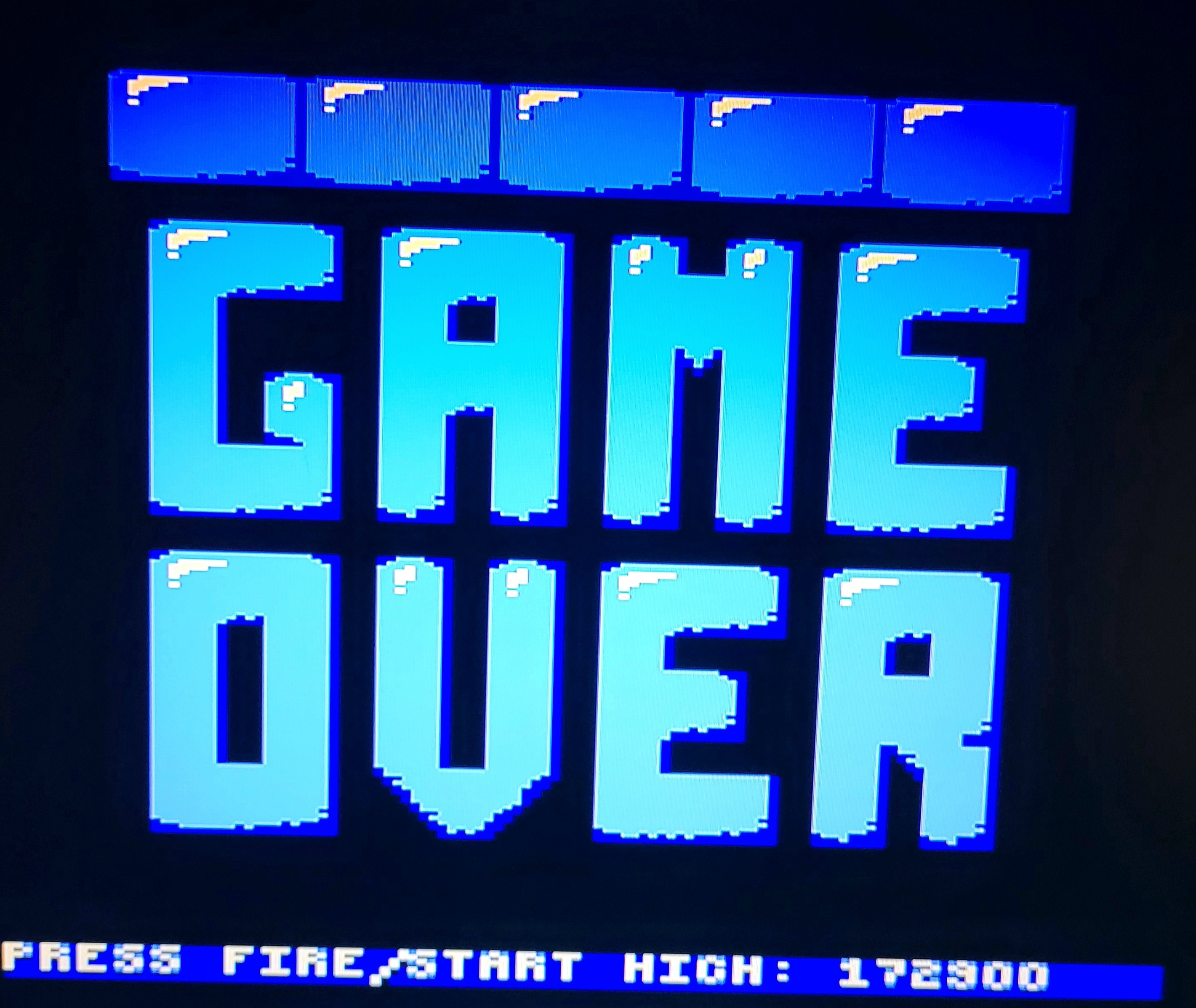 Ok, revidiere - ich kann es nicht jedes Mal ab der 2. Spielrunde reproduzieren. Aber habe das letzte Spiel einfach laufen lassen, d.h. nicht zu Ende gespielt. Das Spiel stand länger im GameOver Bildschirm, dann 2x Mal Joystick Button und das Problem ist wieder da. Spiele an echter Hardware (600XL, U1MB, PokeyMax2, Sophia2). Das Altirra OS war aktiv, ich schalte Mal auf XL OS 1.3 um.