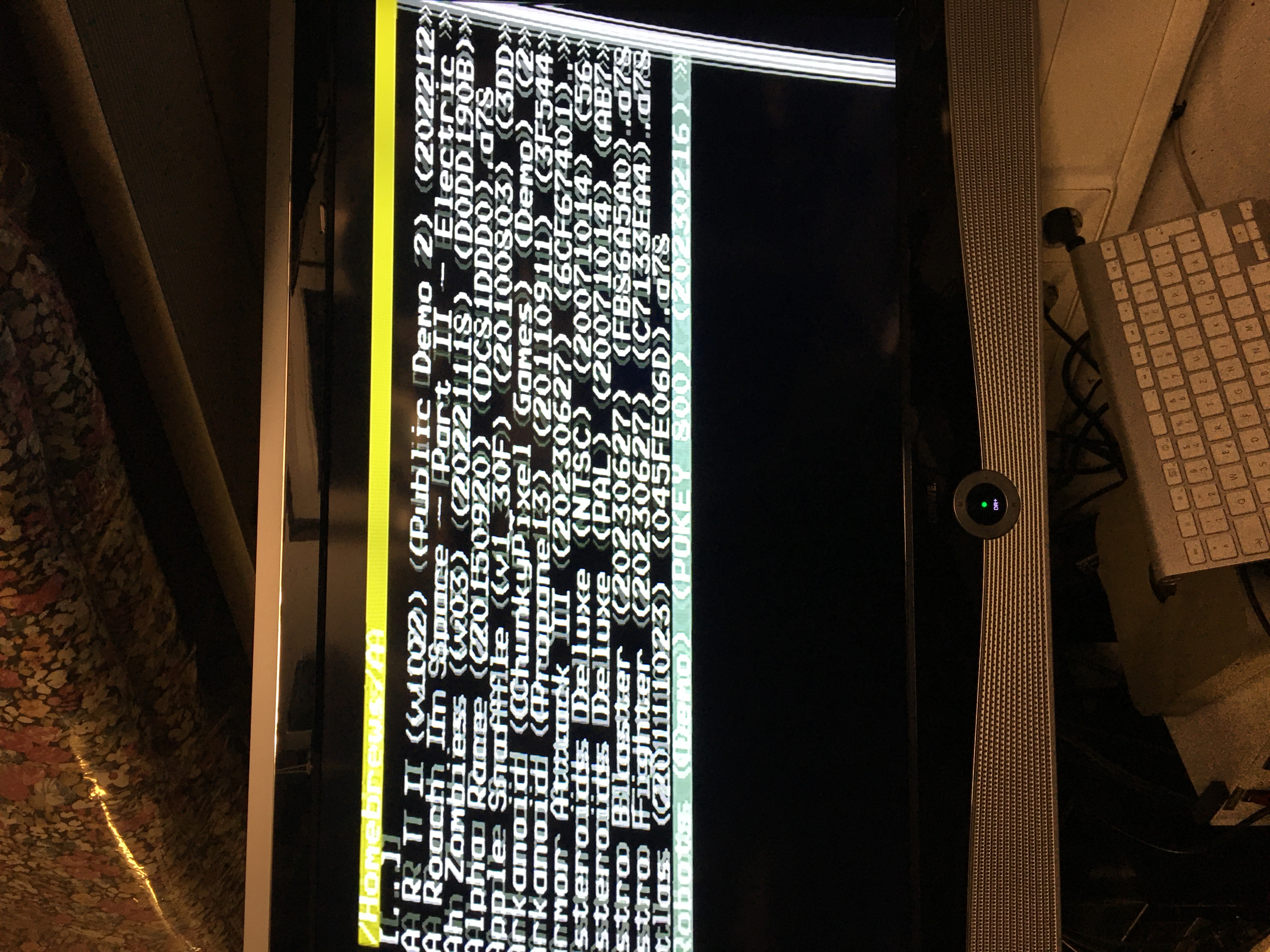 Nach dem Test kam aber schnell Ernüchterung auf, fast alle Homebrews funktionieren nicht. Ich sehe nur Geflimmer auf dem Bildschirm, die Original PAL Spiele funktionieren. Auch Homebrews die PALundNTSC unterstüzen laufen nicht, bis auf die Demo von PETSCII Robots. Auf meiner Dragonfly laufen sie alle problemlos.