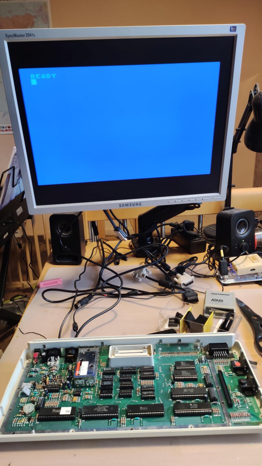 Bin wieder neu dazu gekommen als ich im Müll einen Karton mit ATARI Hardware gefunden habe.....dabei war ein 800xl, ein 600XL, eine 1050 mit Speedy, ein 1064 Speichererweiterung für 600er und diverse Steckmodule. Leider alles ohne Kabel oder Netzteile. Nun zu meinem Problem. Der 800XL hat einen Farbfehler (meine ich) die Schrift ist dunkel Blau und im Selbsttest sind die Farben auch stark verwischt (über Monitorbuchse an Composite) ? Zudem ist auf der Rückseite ein Schalter verbaut die Kabel gehen an einen aufgesockelten Chip auf dem OS. (Bilder kommen nach) beim Schalten kommt entweder das beschriebene Bild oder Memo-Pad..?