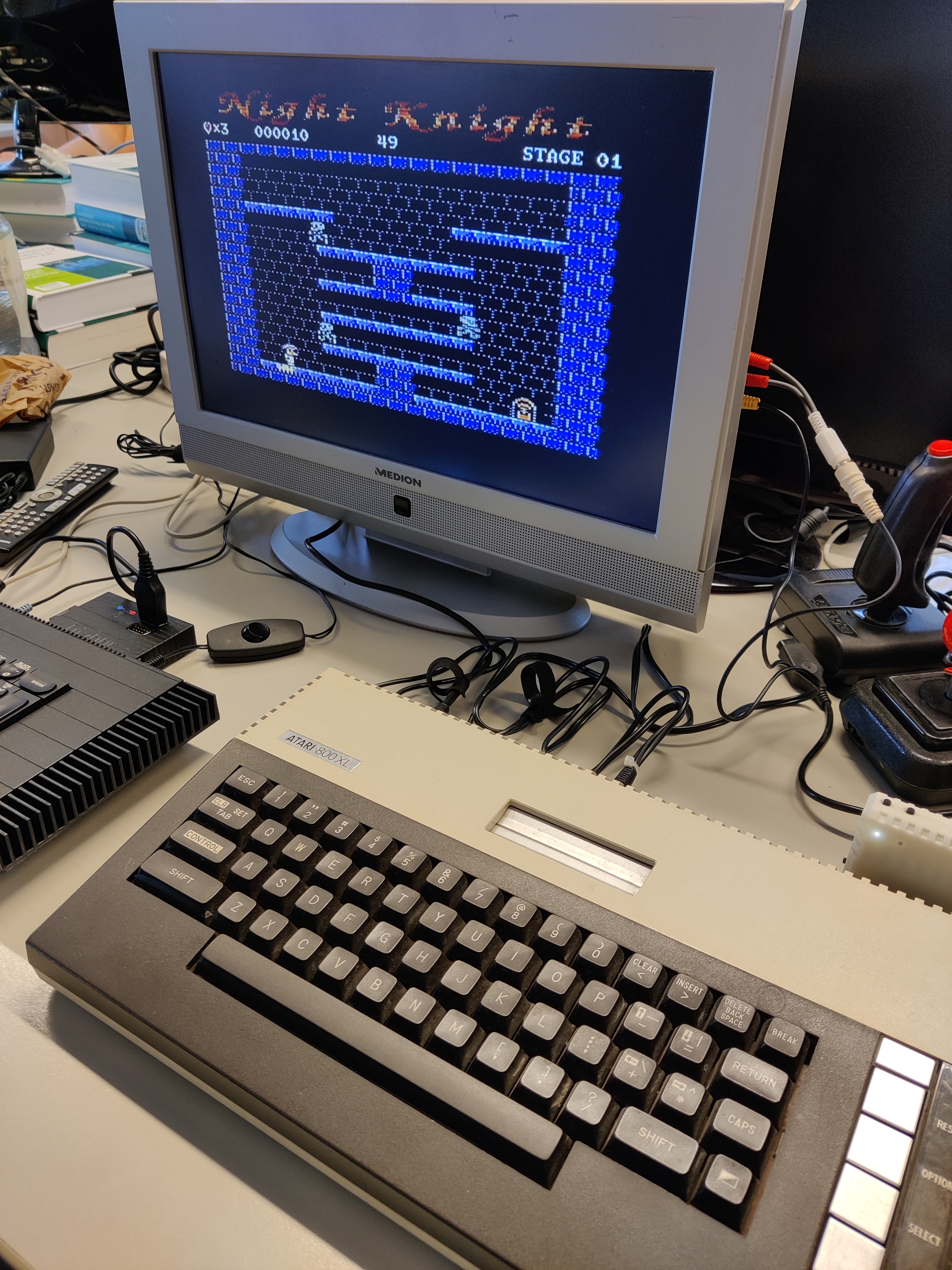 Dragonfly SD cartridge für 7800, NEC Multisync LCD in allen 3 Auflösungen am ST und mein persönliches Highlight: neues Game Night Knight aus dem ABBUC Software-Wettbewerb für 8bit Atari.
