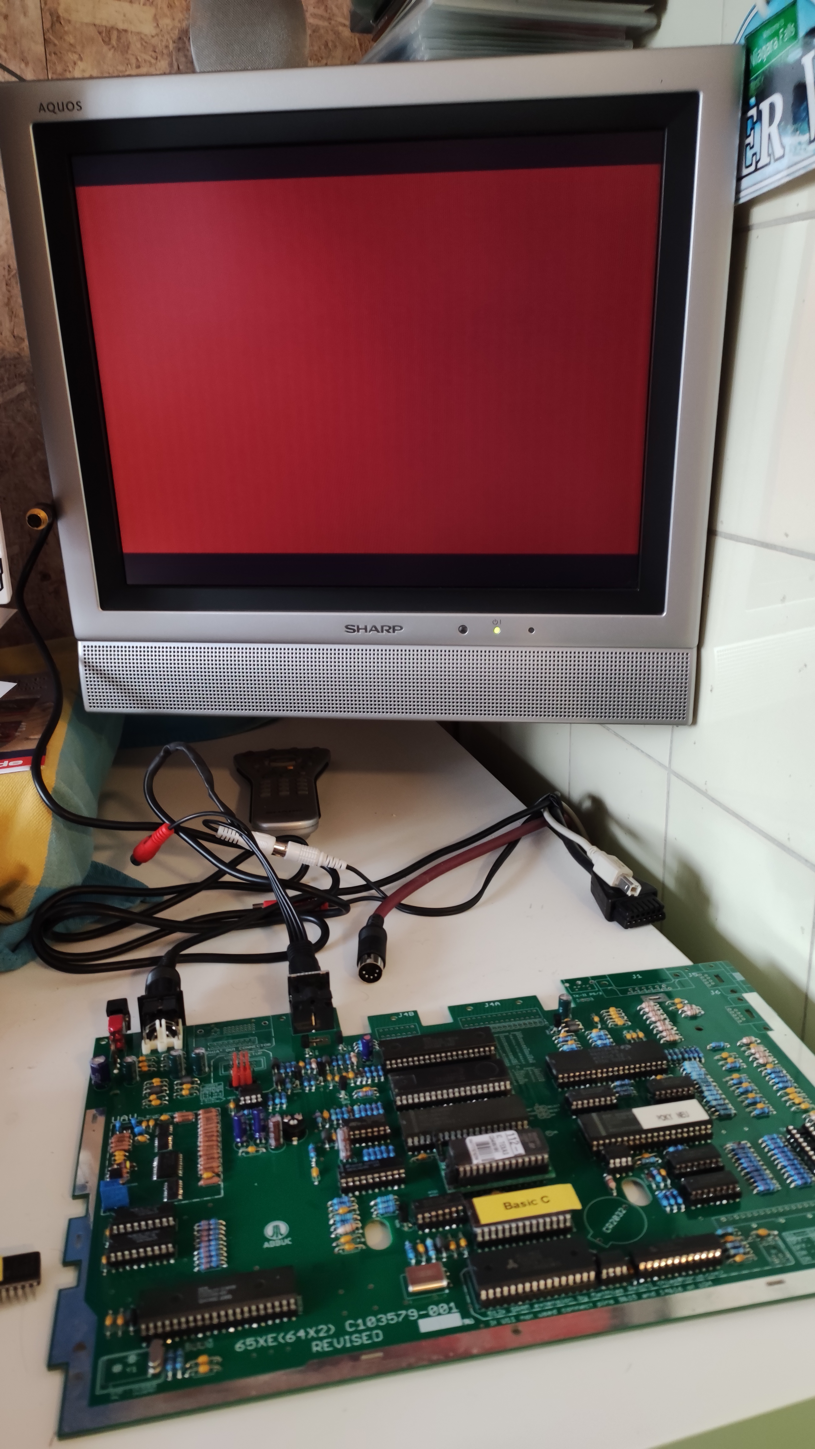 Alle Bauteile (Ausser DVI) sind aufgelötet. Grundfunktionen bisher alle tadellos. Booten per Hispeed über Speedy beschleunigte 1050 klappt problemlos. Joystick funzt. Tastatur auch. Bild und Ton kommen sauber am Monitor an.