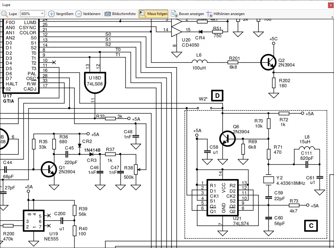 Erhard hat geprüft ob Panos "Super Video for the 130 XE by Charles Cole, Atari Classics Hardware Editor" implementiert wurde und hat dazu Leiterbahnen usw verfolgt.