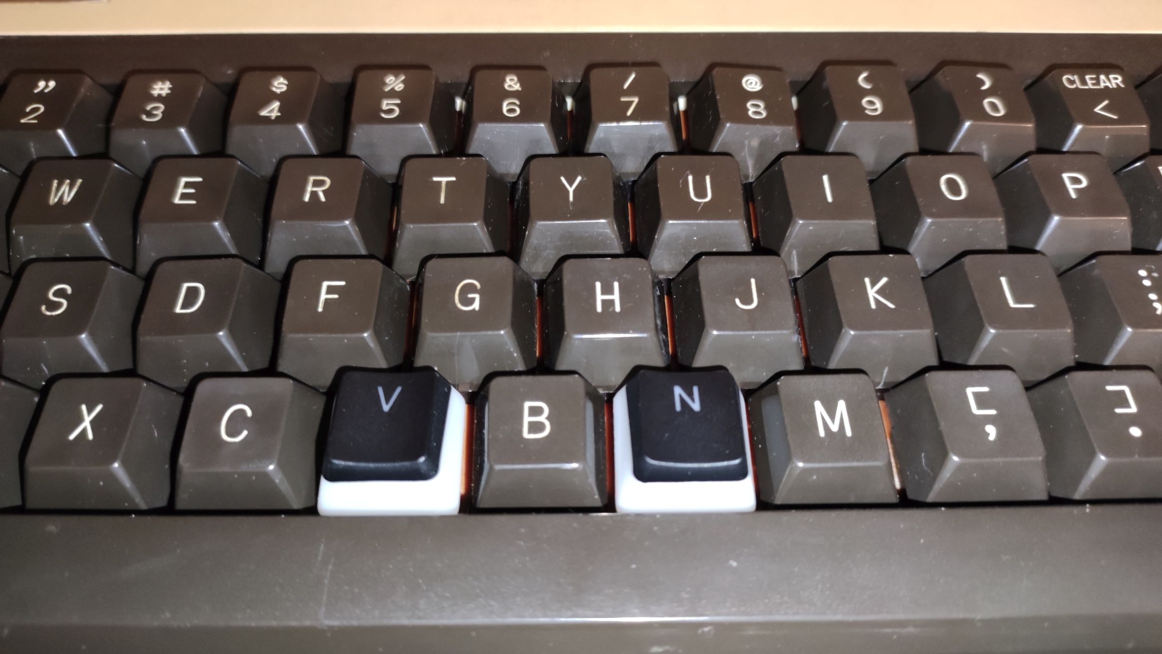Ich habe eine Tastatur, die funktioniert noch, aber es fehlen die Tasten "V" und "N". Ich habe sie zwar provisorisch mit Tasten von Cherry MX Schaltern ersetzt, aber das sieht doof aus: