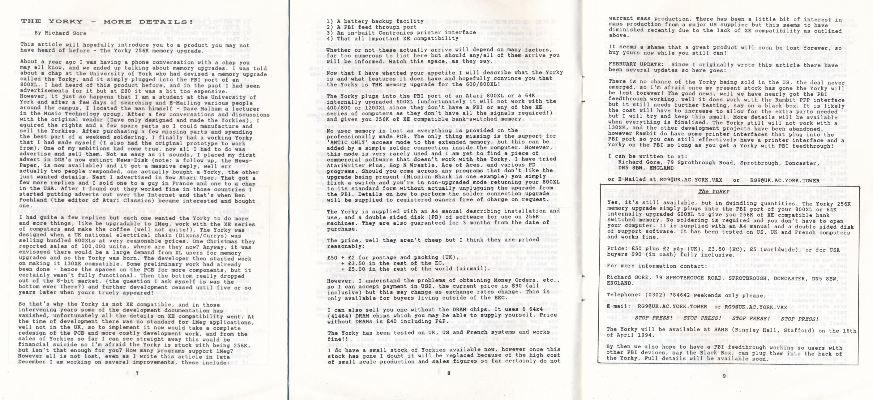 The Yorky 256K Upgrade review - By Dean Garraghty (c)1993