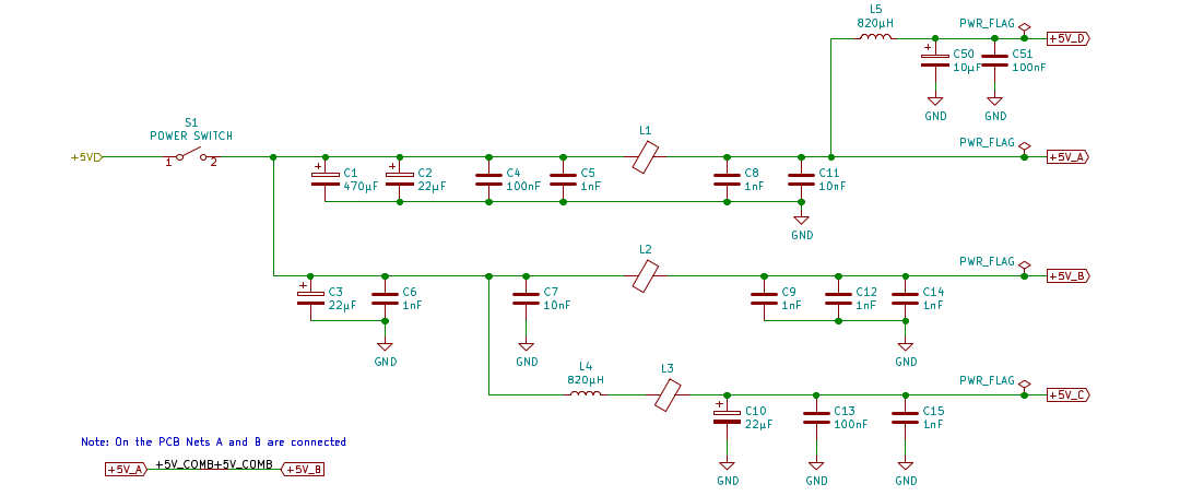 Meine Schaltung ist von Rev 1D (tu-chemnitz .de). Da gibt es auf der 5 V Schiene die Abgänge 5V/1 ... 5V/3. Dann taucht in der Schaltung noch ein Anschluss 5V/4 auf, den kann ich nicht entdecken?