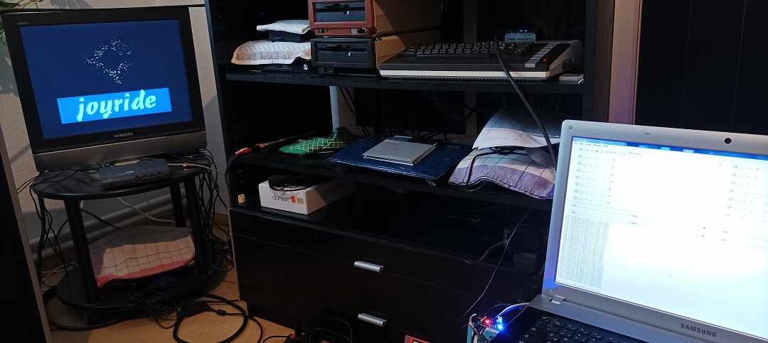 Die A+B Seite der Joyride Demo lädt via RespeQT einwandfrei. Mein PC ist etwas "umständlich" mit dem A8 verbunden:
