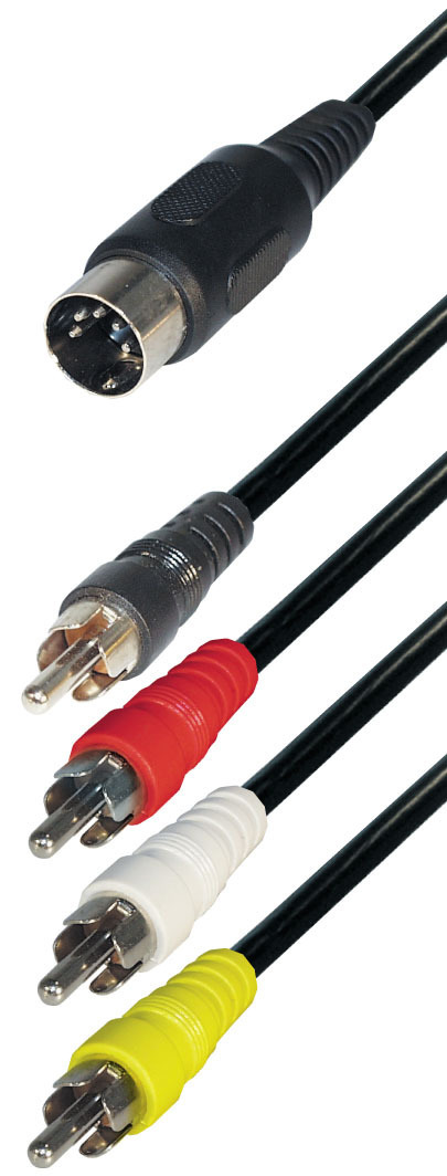 Übrigens: Das FBAS Kabel vom C64 paßt auch, wenn es einen 5po0l. DIN hat! Die Pins für Composite (FBAS) und Ton liegen an gleicher Position!