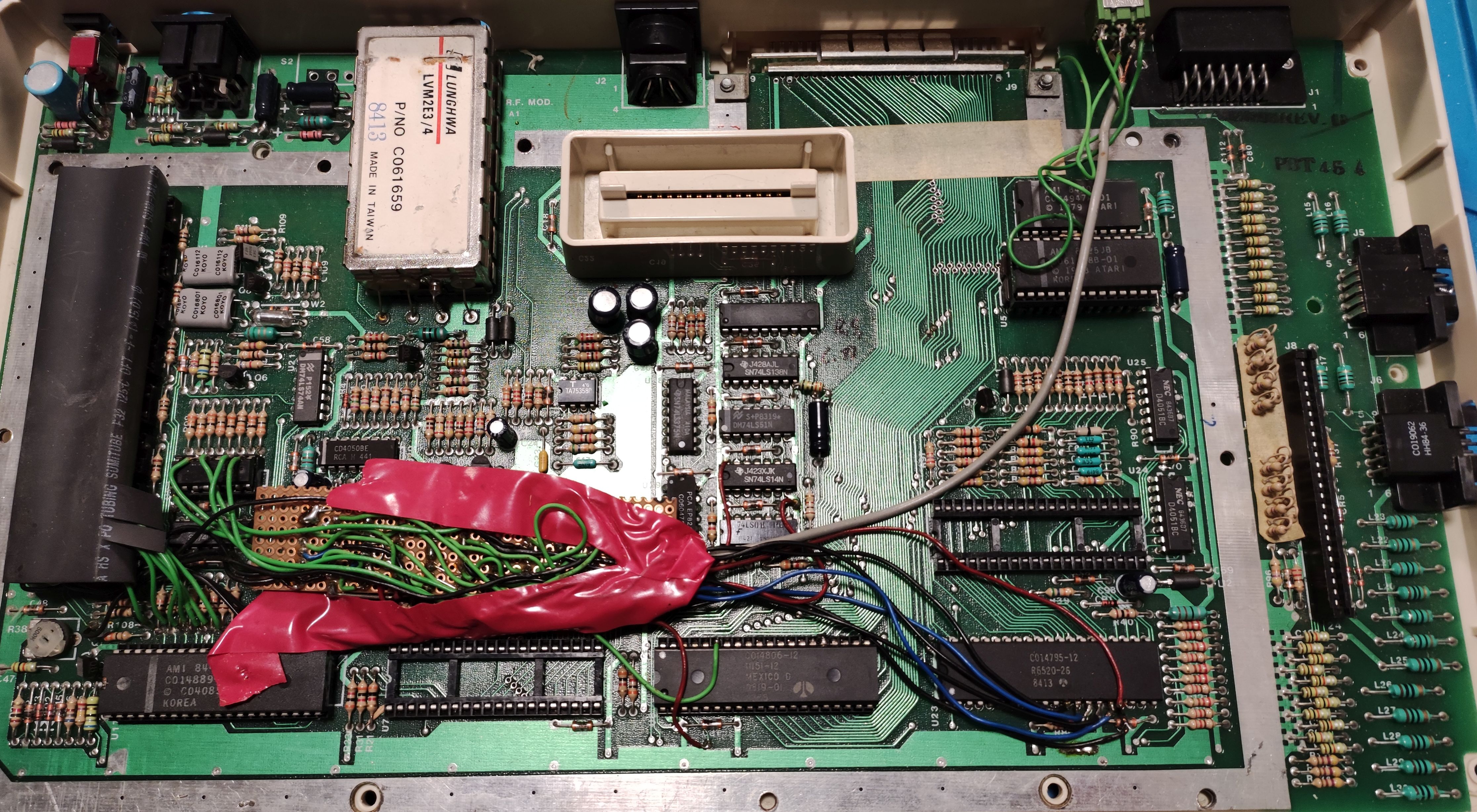 Ich habe einen ziemlich verbastelten 800 XL erstanden. So richtig schön Oldschool erweitert mit Huckepack DRAM und Lochrasterplatine und duzenden von einzelnen Drähten Kreuz und Quer verlegt und auf zum Teil hochgeboene IC-Pins verlötet. Ich denke ihr wisst von was ich rede ;-)