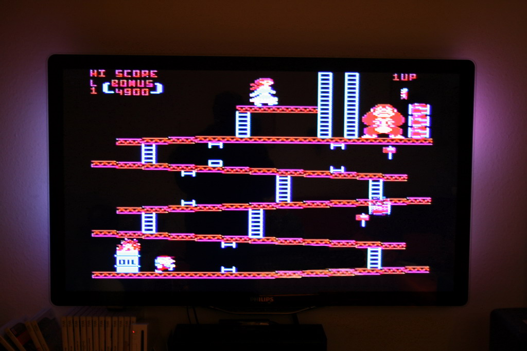 Das Bild vom Atari über S-Video wirkt quasi gestochen scharf. Allerdings hat das zur Folge, daß man diese senkrechten Pixelstreifen sieht, welche aber in Spielen nicht auffallen.