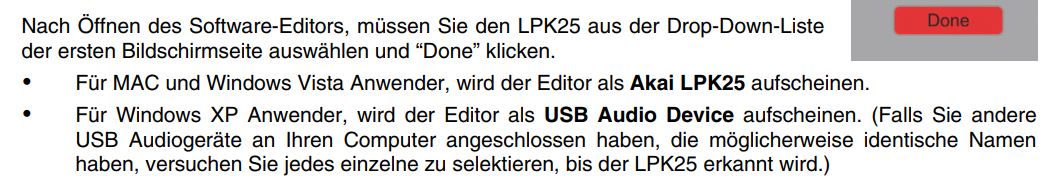 Vielleicht habe ich beim letzten mal keinen Neustart durchgeführt, nachdem sich der Midi-Treiber installiert hatte und eine Sprechblase verkündete: "Sie können das Gerät jetzt verwenden".