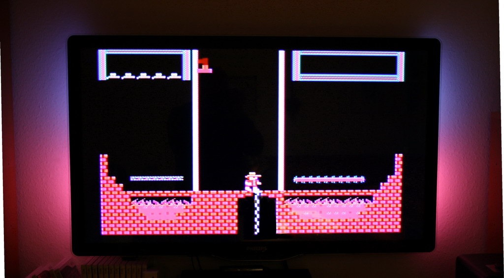 Das Bild vom Atari über S-Video wirkt quasi gestochen scharf. Allerdings hat das zur Folge, daß man diese senkrechten Pixelstreifen sieht, welche aber in Spielen nicht auffallen.