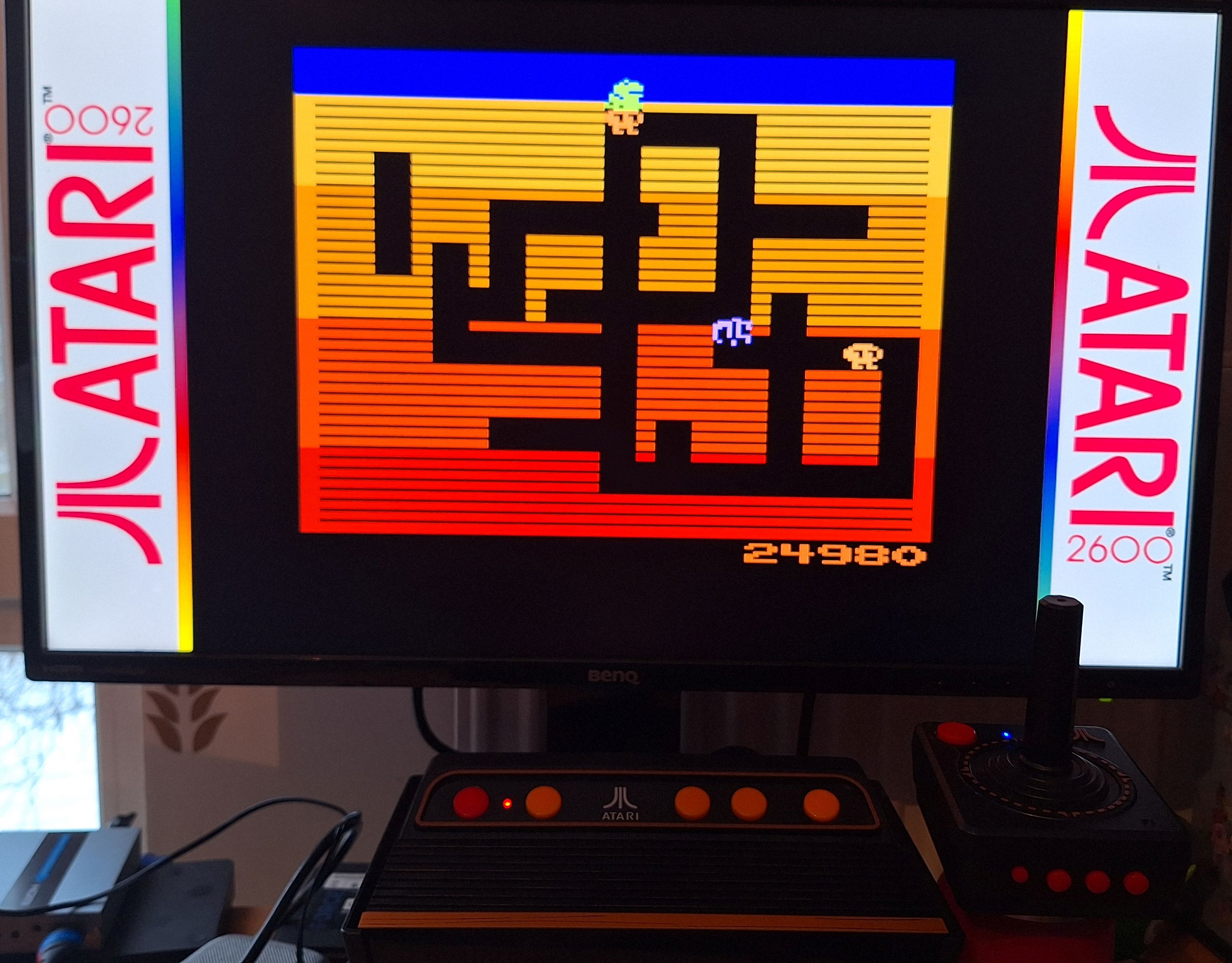 Damit keiner denkt, ich daddel hier nur rum, habe ich mein FB8 (mal von sleeπ gekauft, glaube ich) ganz unschuldig am Arbeitsplatz meiner studentischen Hilfskraft angeschlossen. Ist komplett unmodifiziert und tatsächlich daddelt sie mehr als ich. Vor allem River Raid.