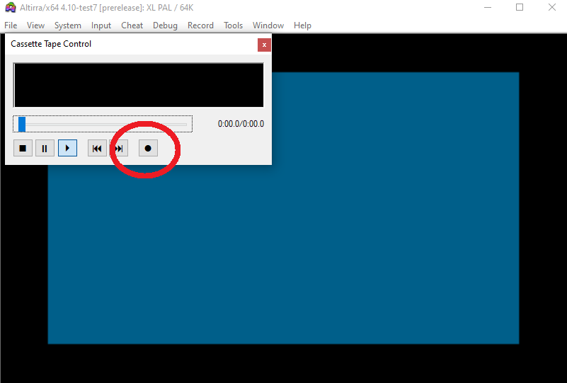 und auf den Aufnahmeknopf klicken CSAVE und zweimal Return drücken Zum Laden im Tape Control "zurückspulen" und CLOAD aufrufen